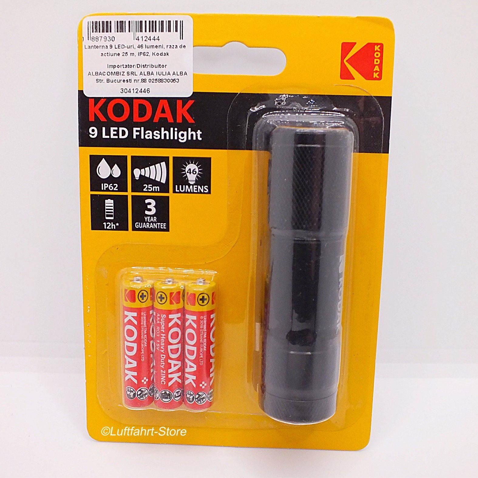 Kodak 9 LED Flashlight-Taschen- lampe, 25 m, inkl. Batterien Art.-Nr. 13075