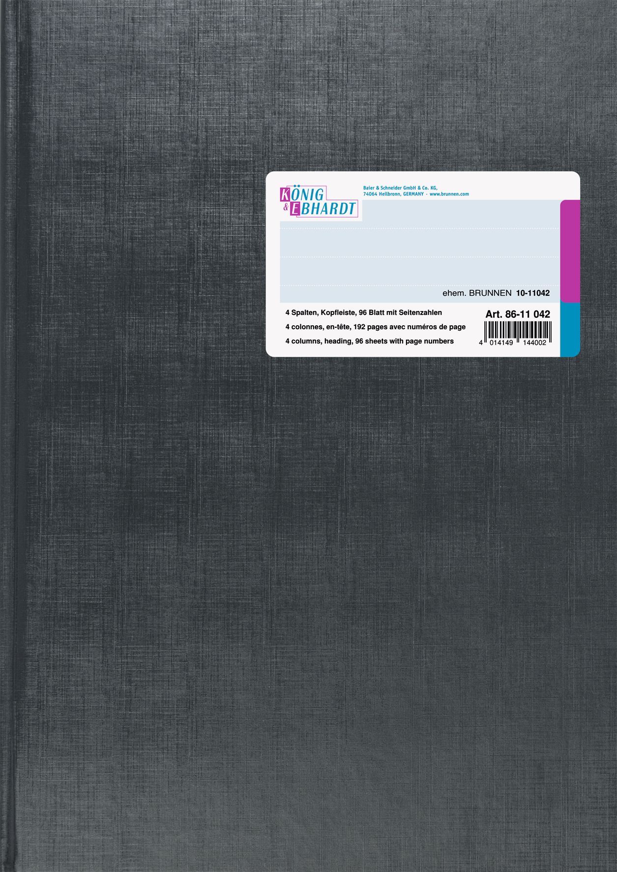 König & Ebhardt 86-11042 Spaltenbuch Kopfleisten-Ausführung - A4, 4 Spalten, 96 Blatt