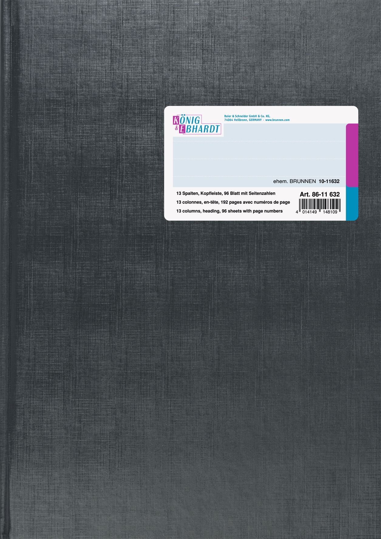 König & Ebhardt 86-11632 Spaltenbuch Kopfleisten-Ausführung - A4, 13 Spalten, 96 Blat