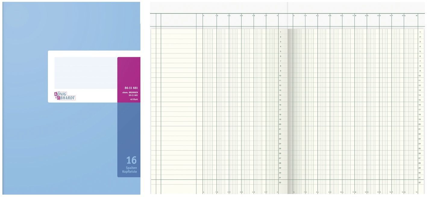 König & Ebhardt 86-11661 Spaltenbuch Kopfleisten-Ausführung - A4, 16 Spalten, 40