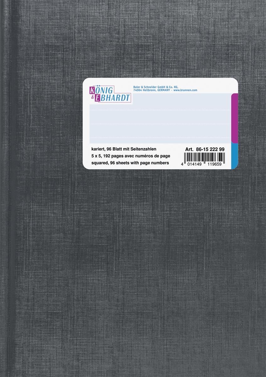 König & Ebhardt 861522299 Geschäftsbuch A5 kariert, 5 mm grau