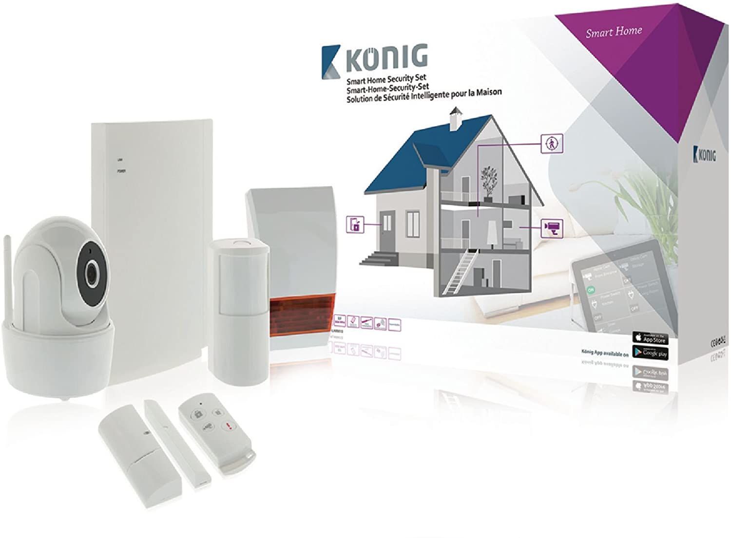 König Smart Home Security Set SAS-CLALARM10, Wi-Fi/Funk, Cloud-basiert, weiß