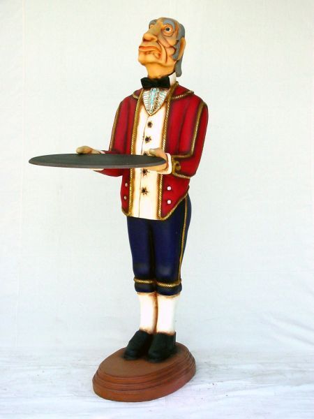 Königlicher Butler Englisch mit Tablett lebensgroß 188cm für draußen aus GFK