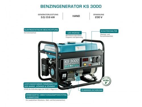 Könner & Söhnen Benzin-Generator KS 3000 Notstromaggregat mobiler Generator 230V