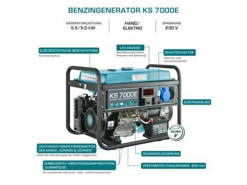 Könner & Söhnen Benzin-Generator KS 7000E Notstromaggregat mobiler Generator 230V