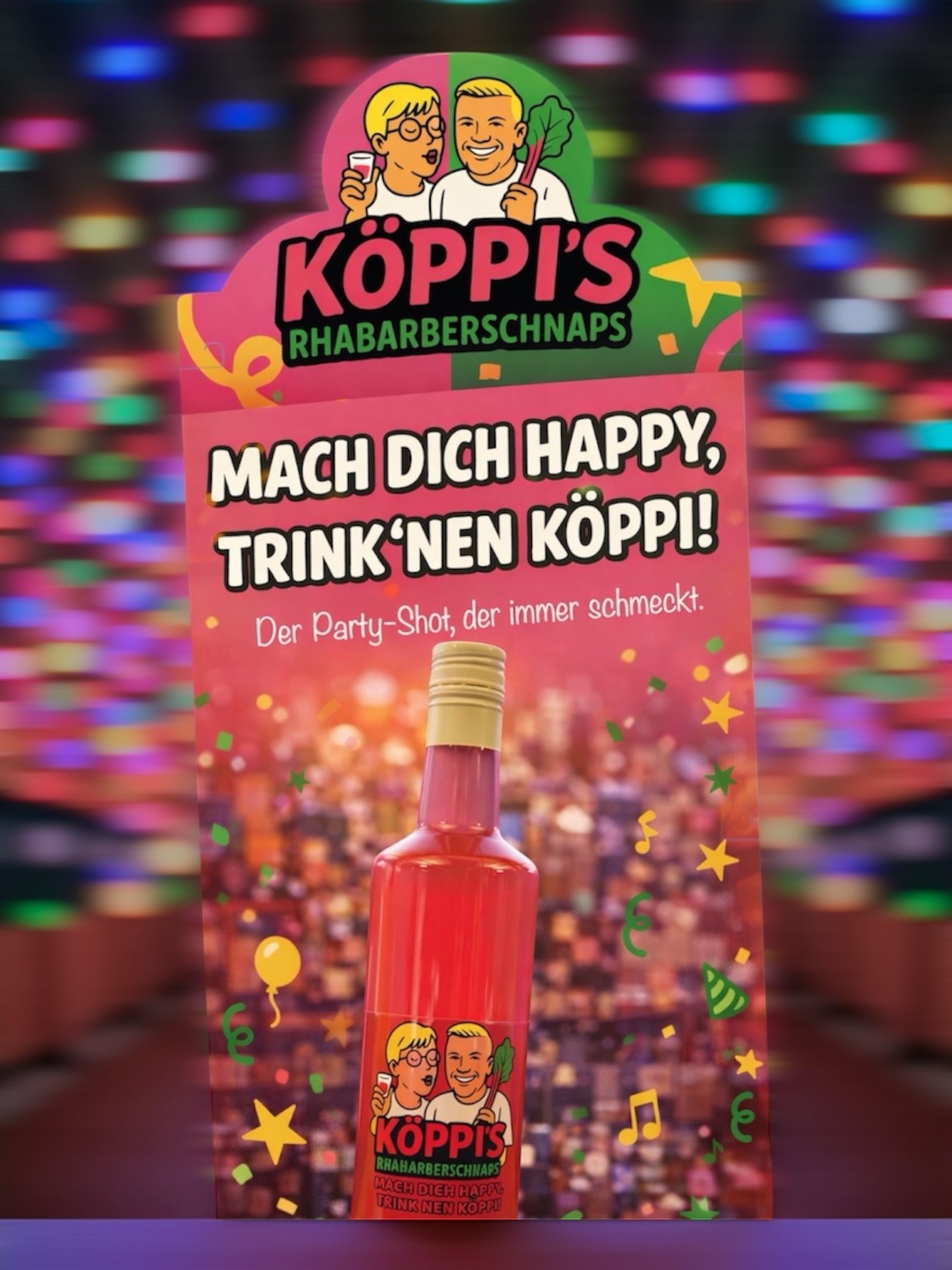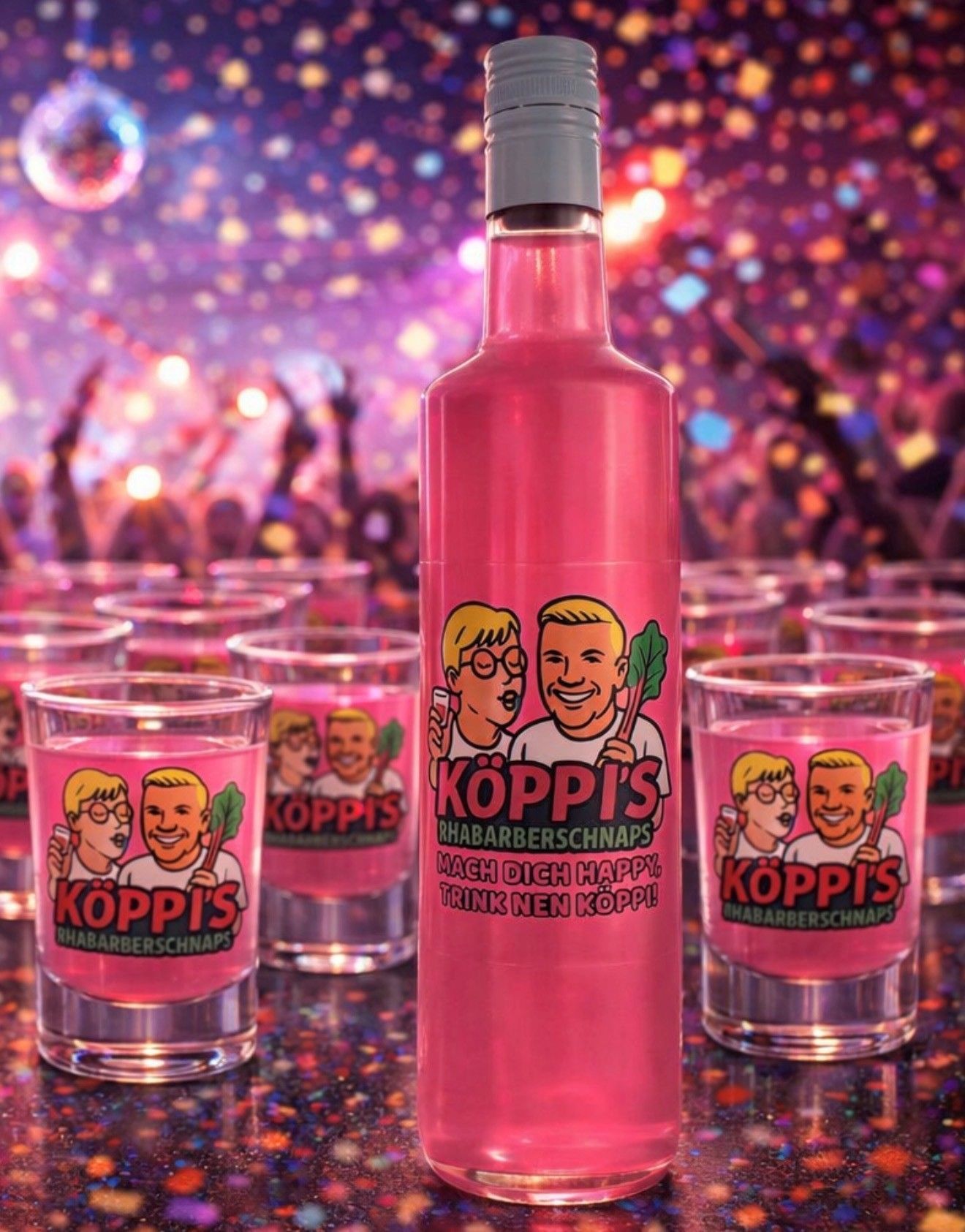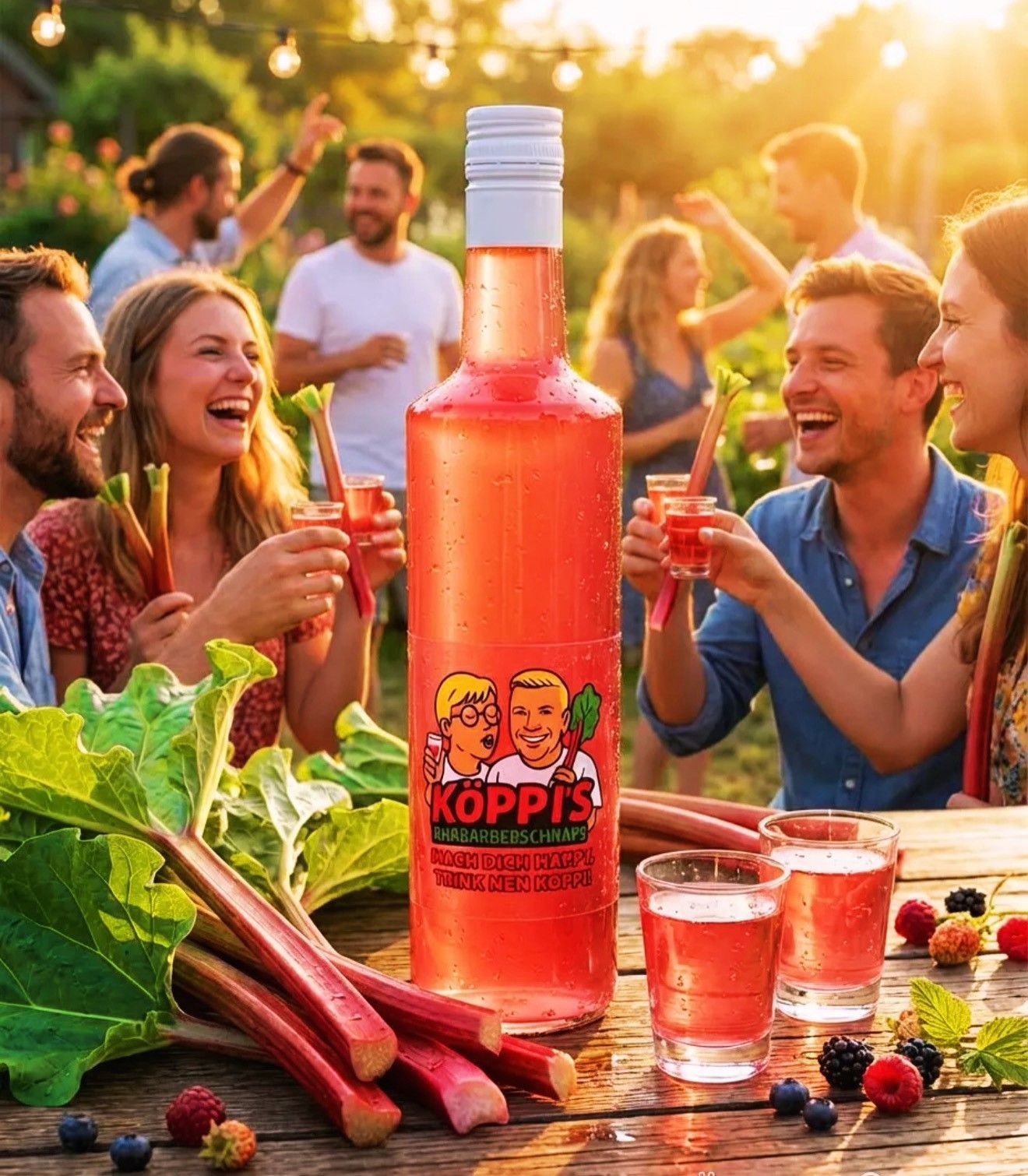KÖPPIS Rhabarberschnaps - Rhabarber & Vanille Partyshot | 0,7 l | 15 % Vol. | Fruchtl
