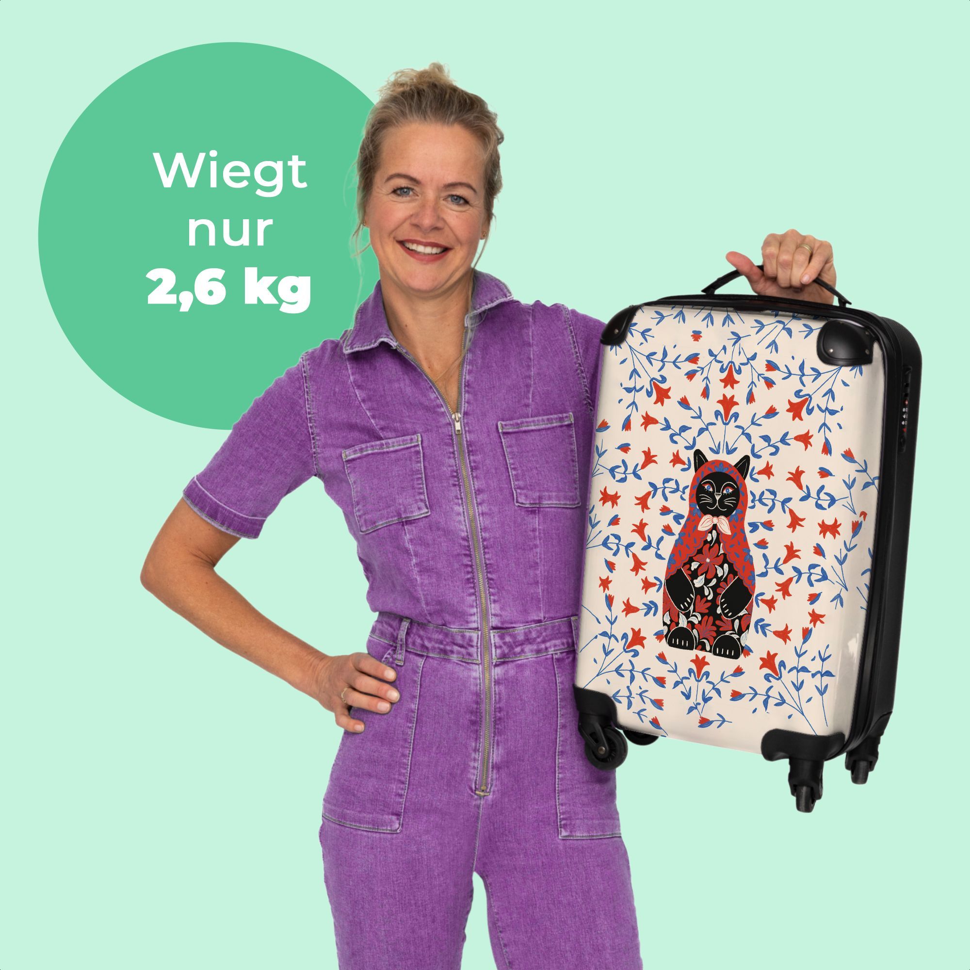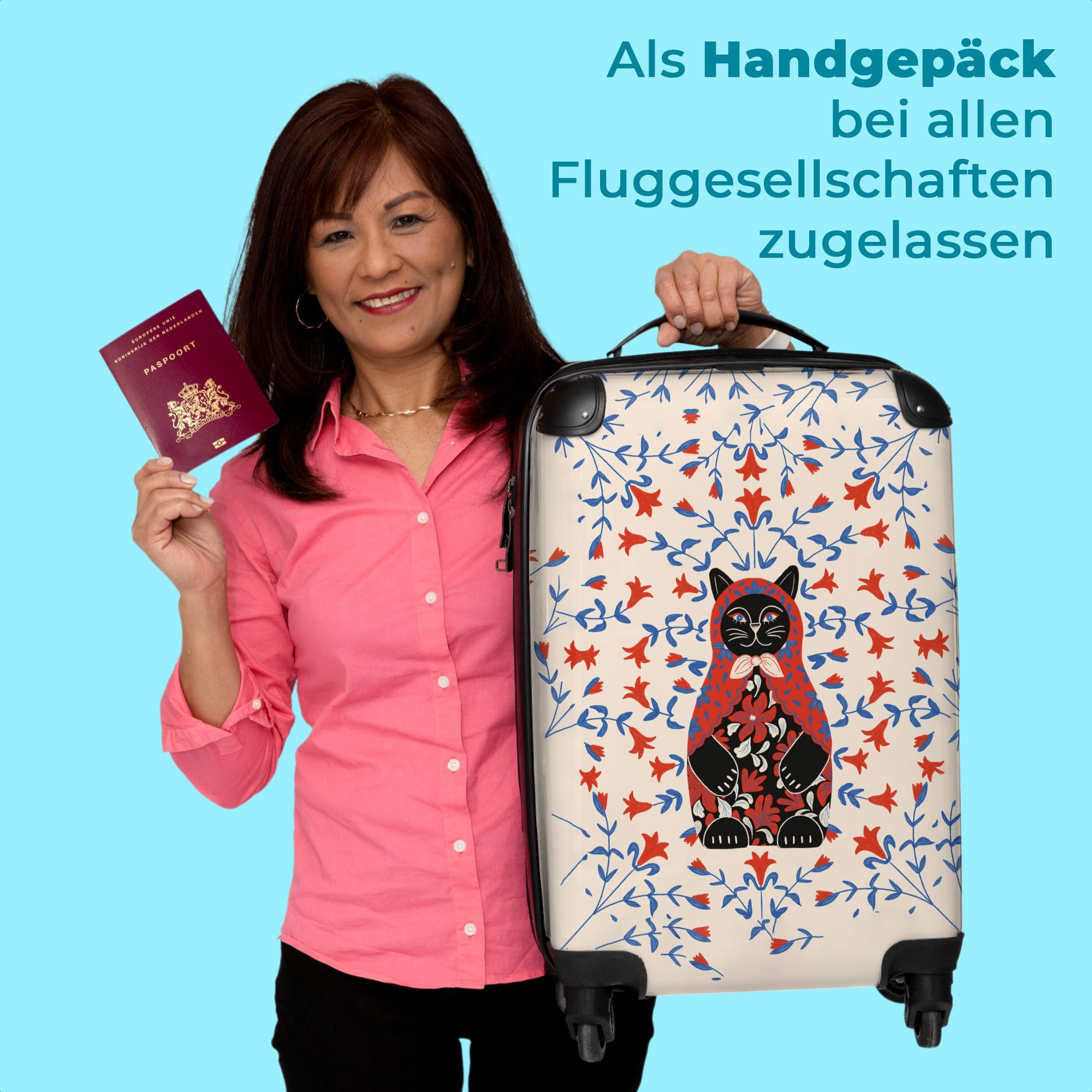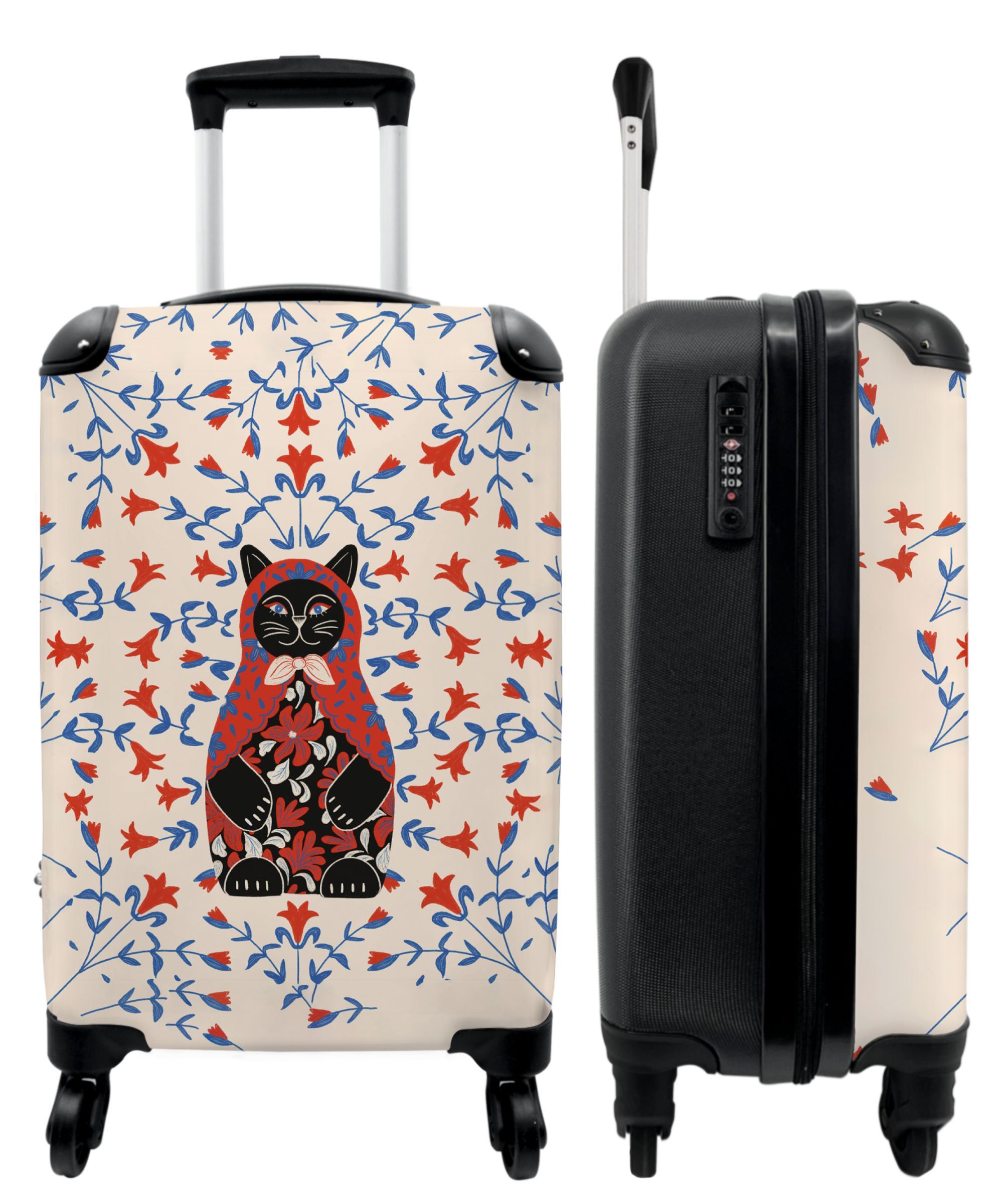 Koffer - Handgepäck - Abstrakt - Katze - Blumen - Beige - Trolley - Rollkoffer -