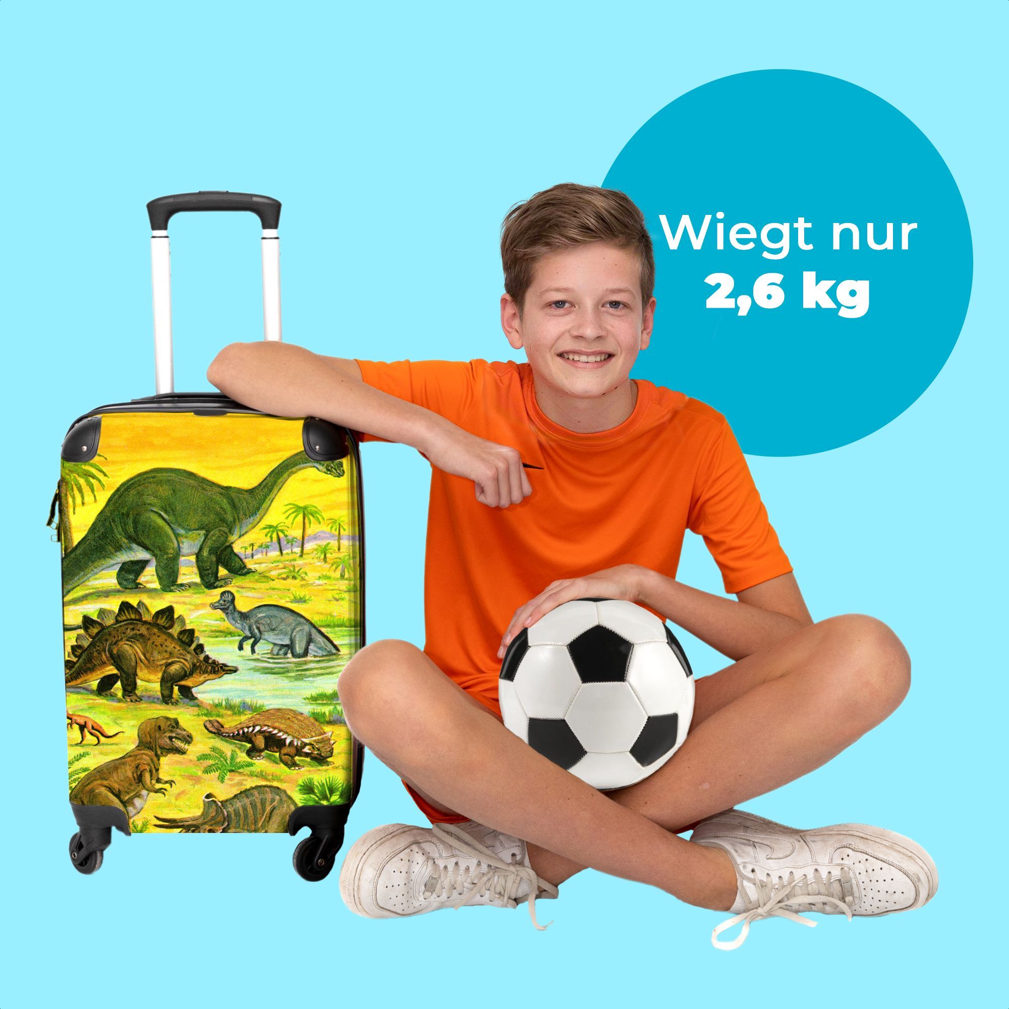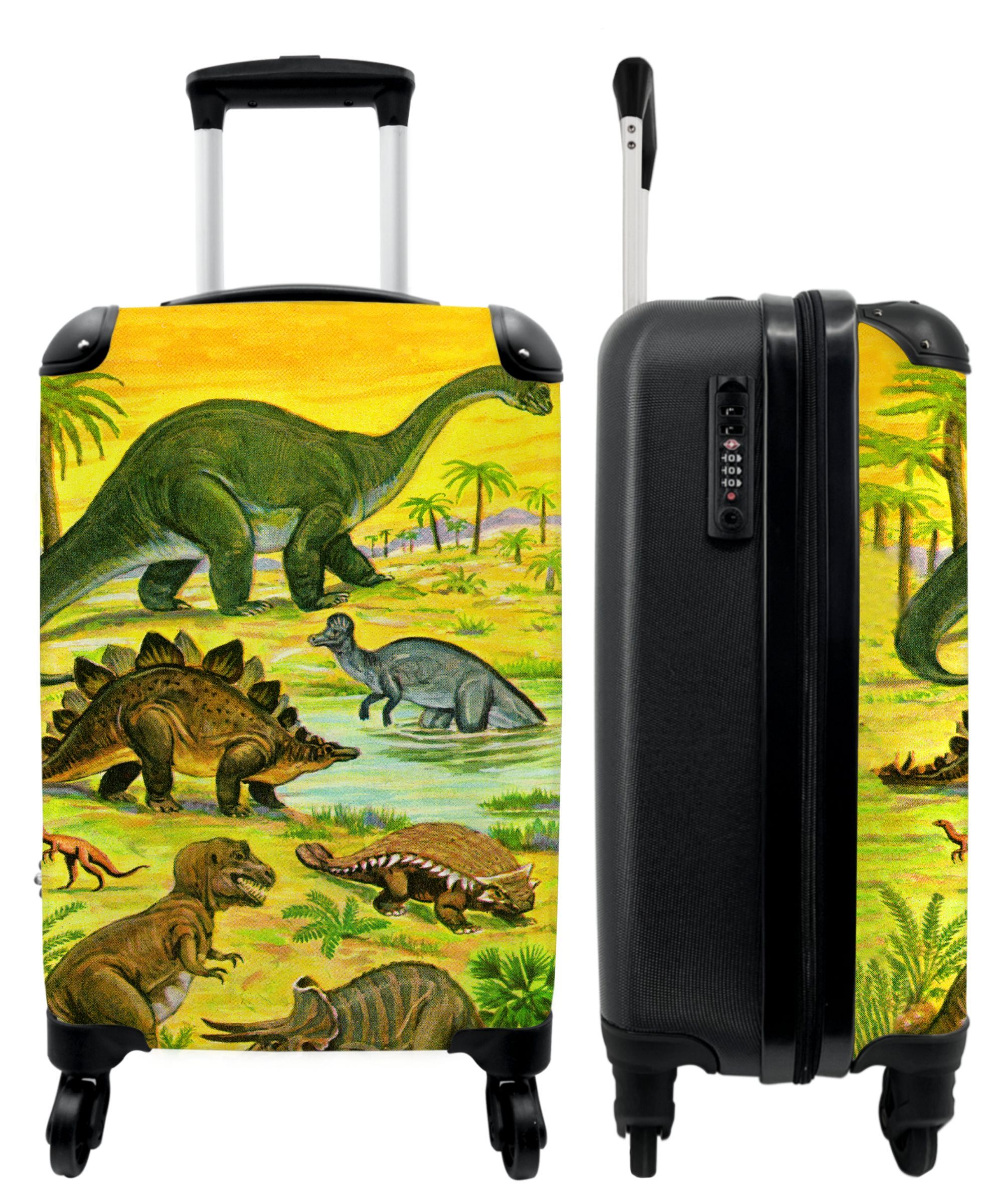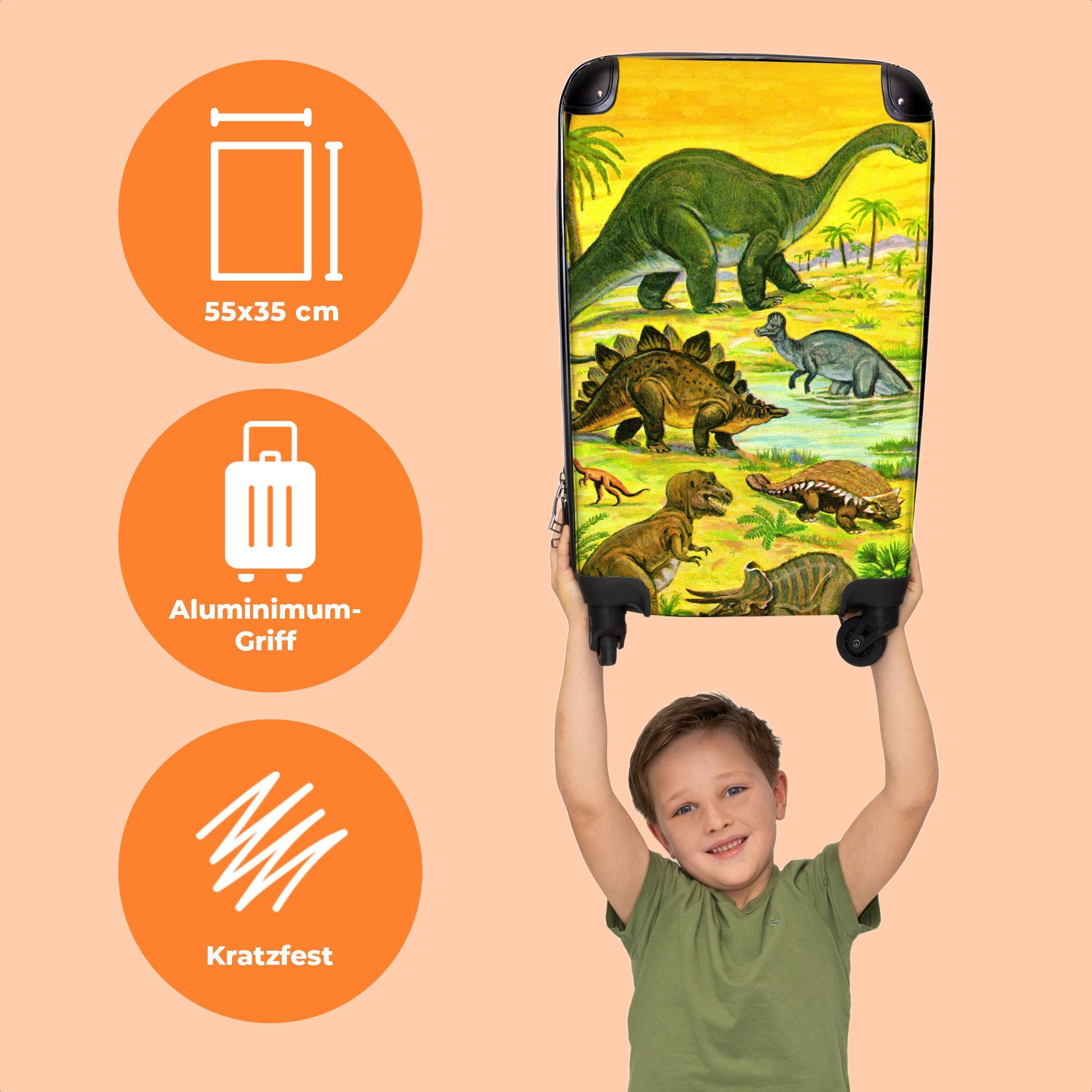 Koffer - Handgepäck - Dino - Illustration - Gelb - Jungen - Trolley - Rollkoffer -