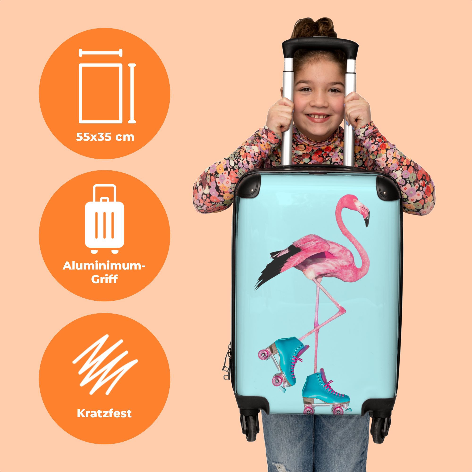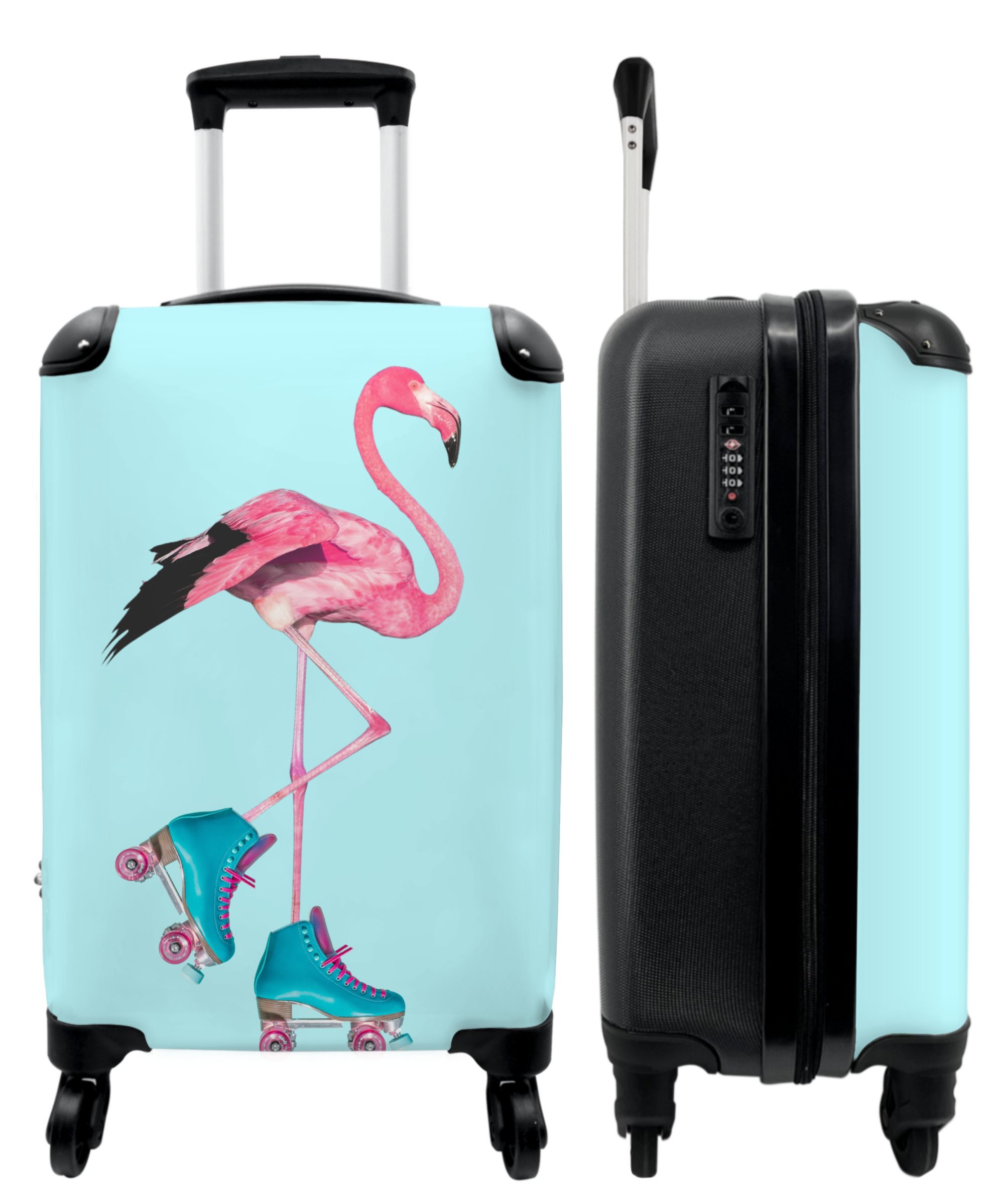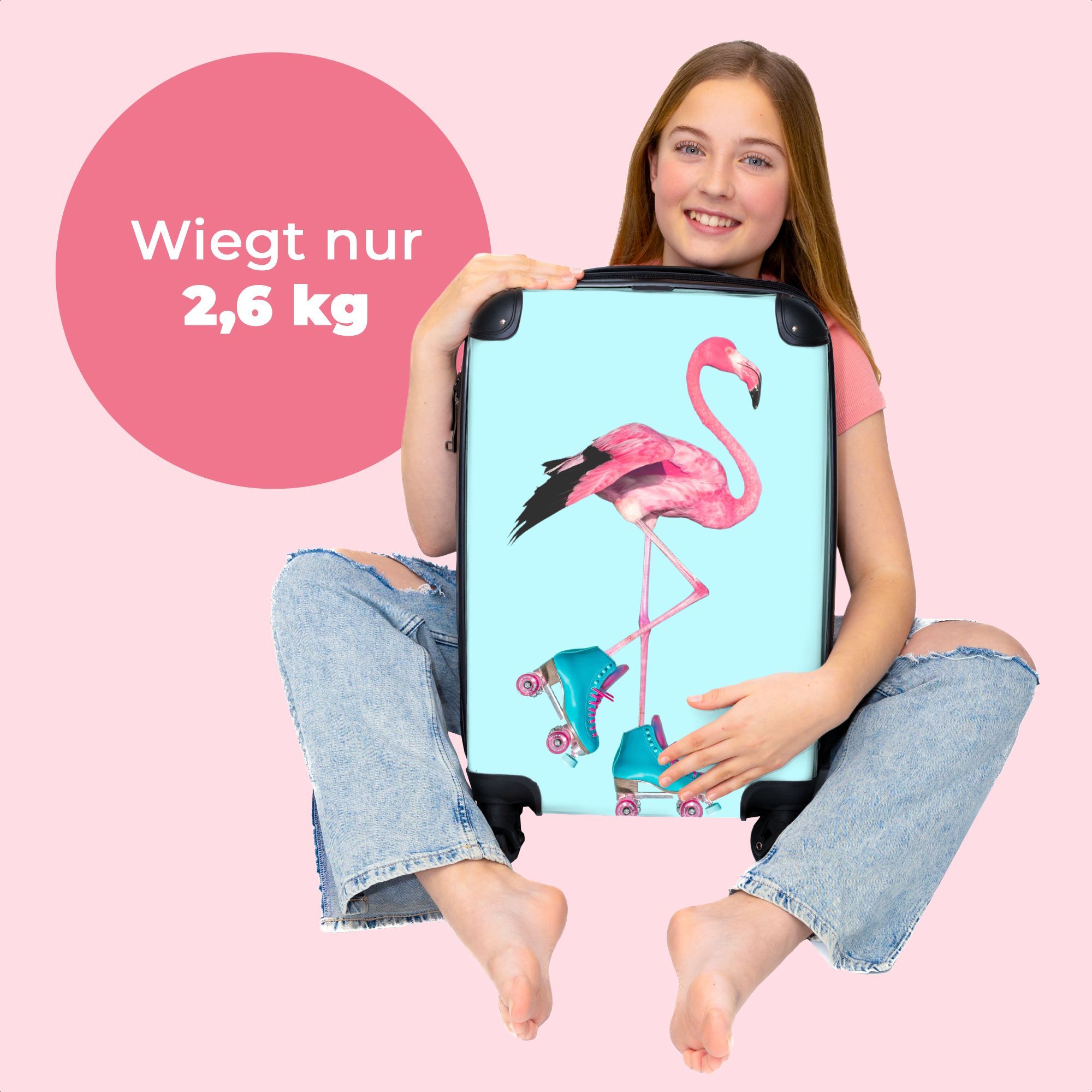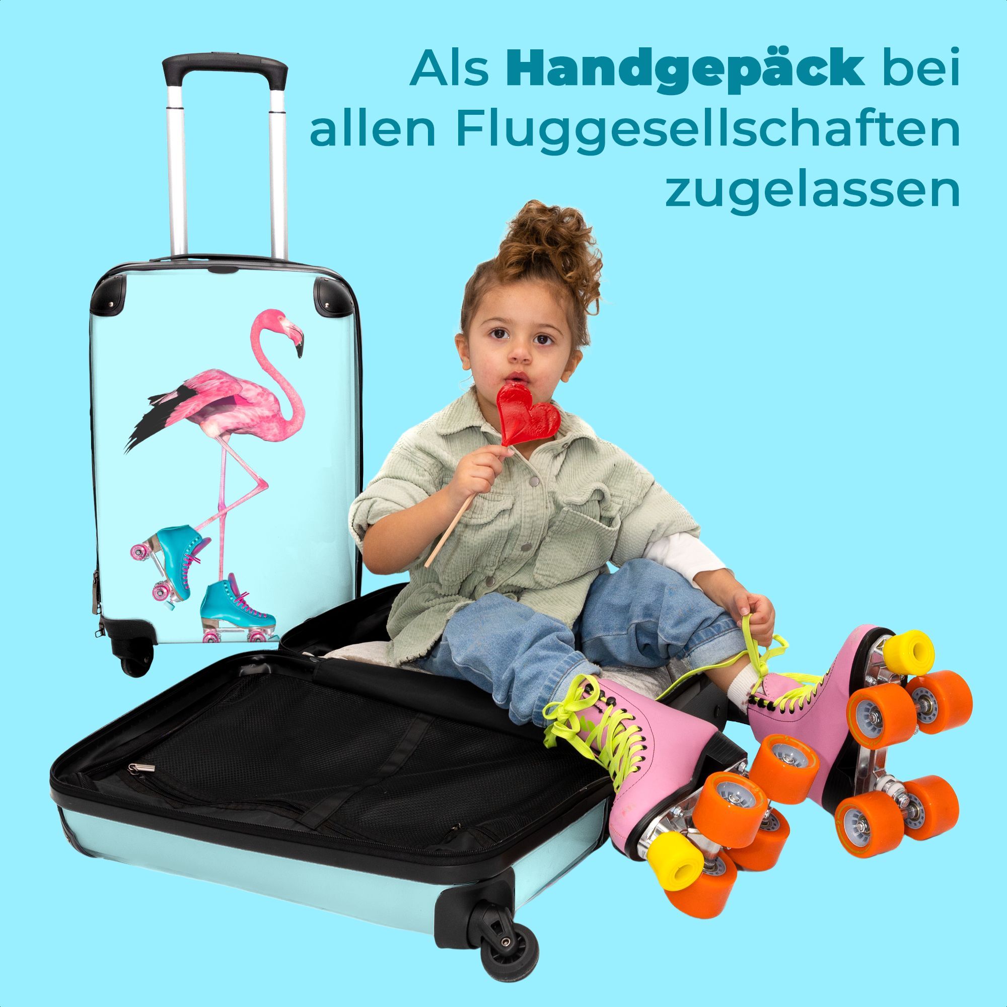 Koffer - Handgepäck - Flamingo - Rollschuhe - Blau - Rosa - Trolley - Rollkoffer -