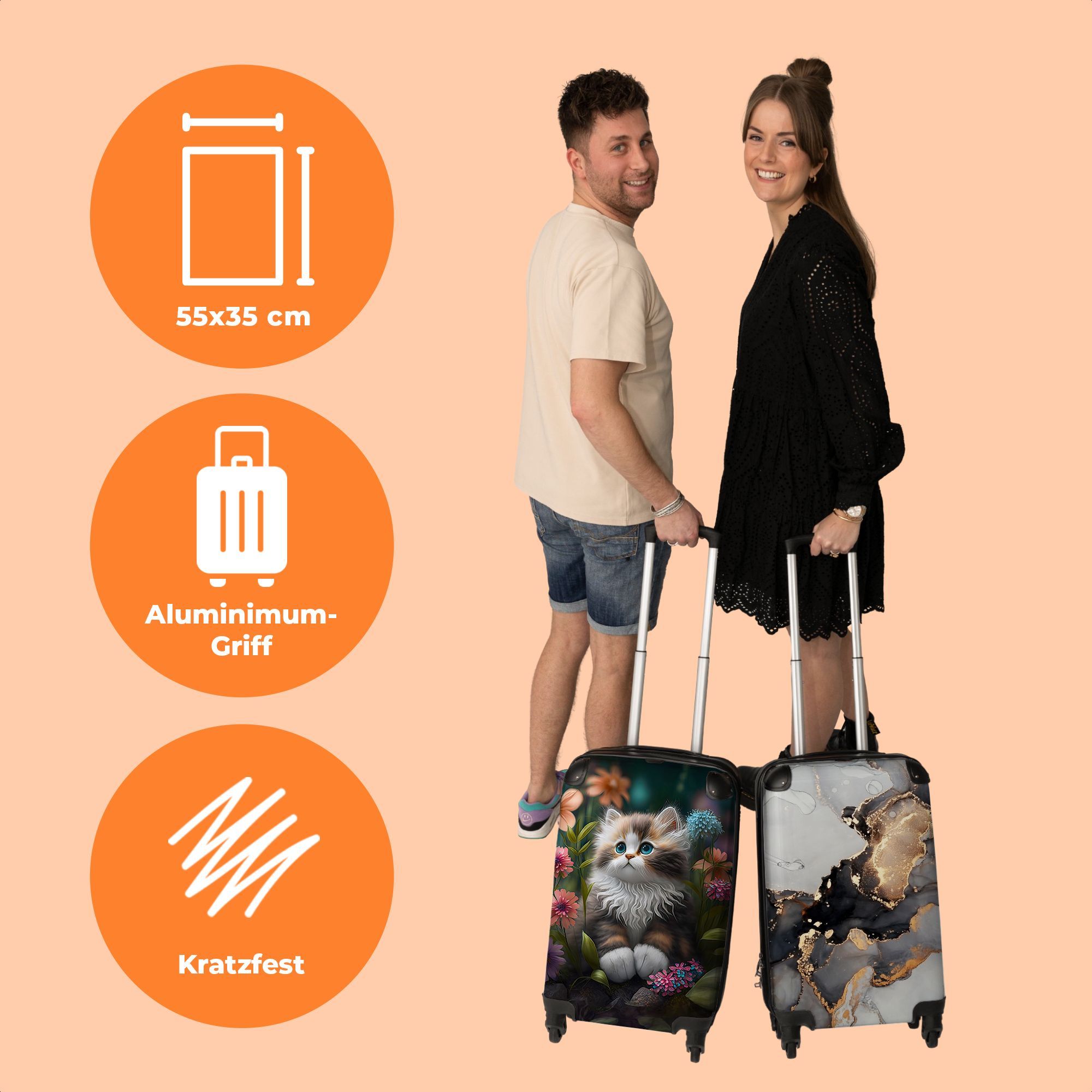 Koffer - Handgepäck - Kätzchen - Illustration - Blumen - Natur - Trolley - Rollkoffer