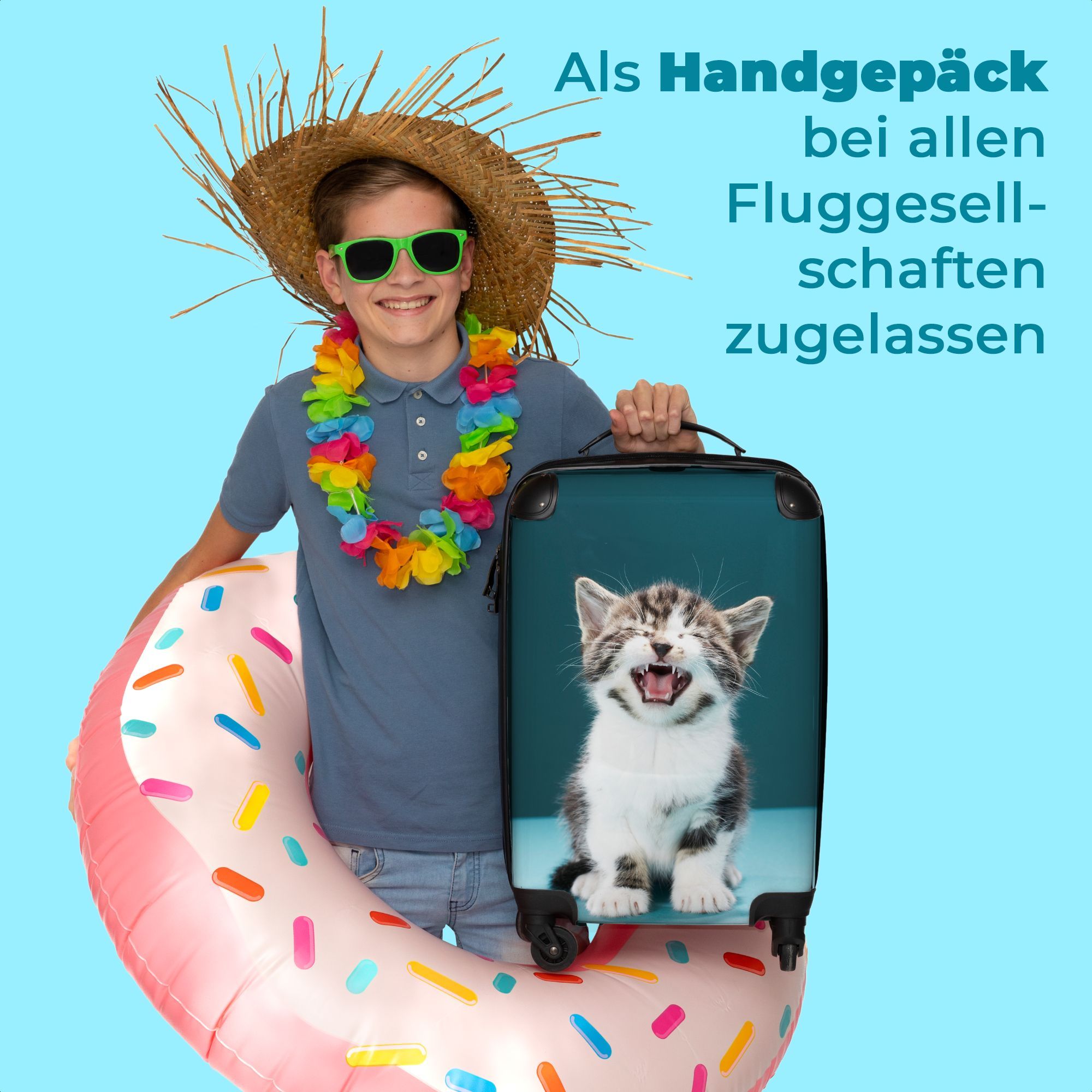Koffer - Handgepäck - Kätzchen - Katze - Miau - Blau - Trolley - Rollkoffer - Kleine