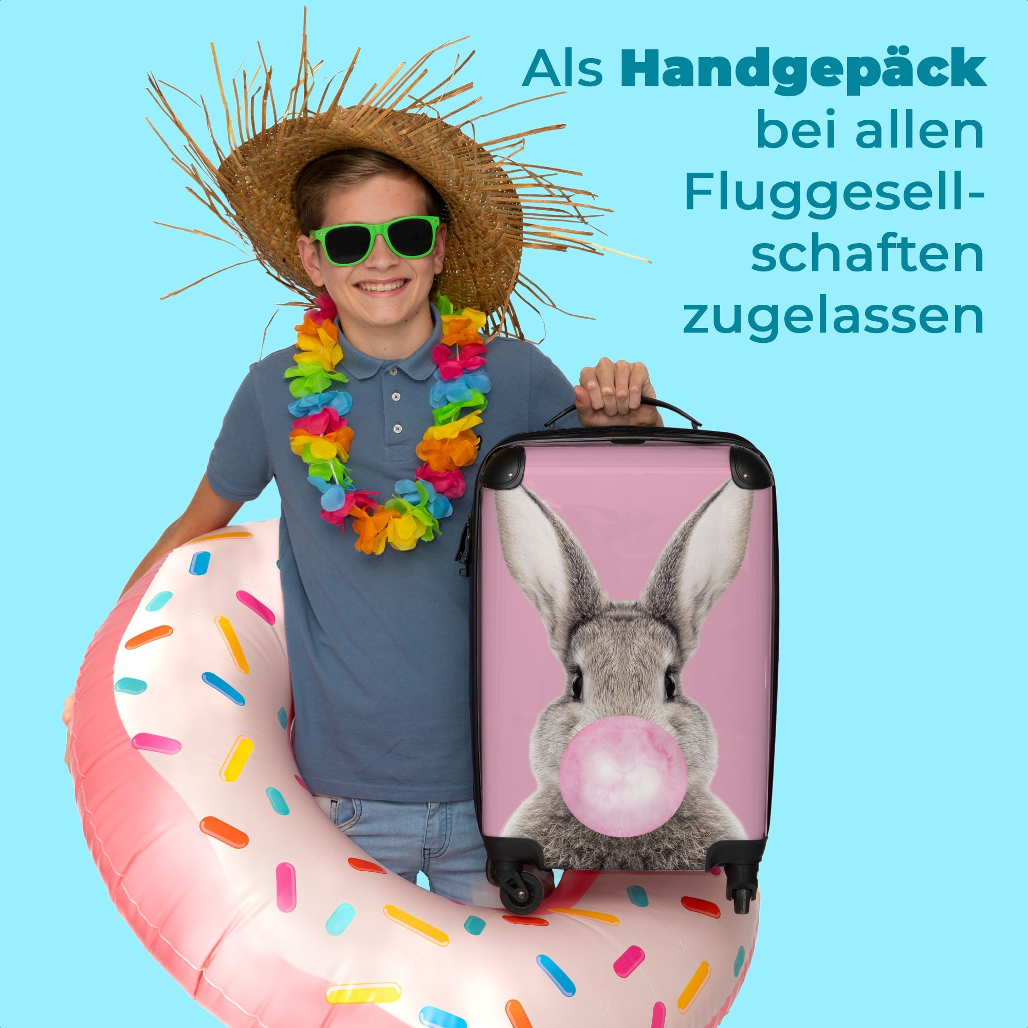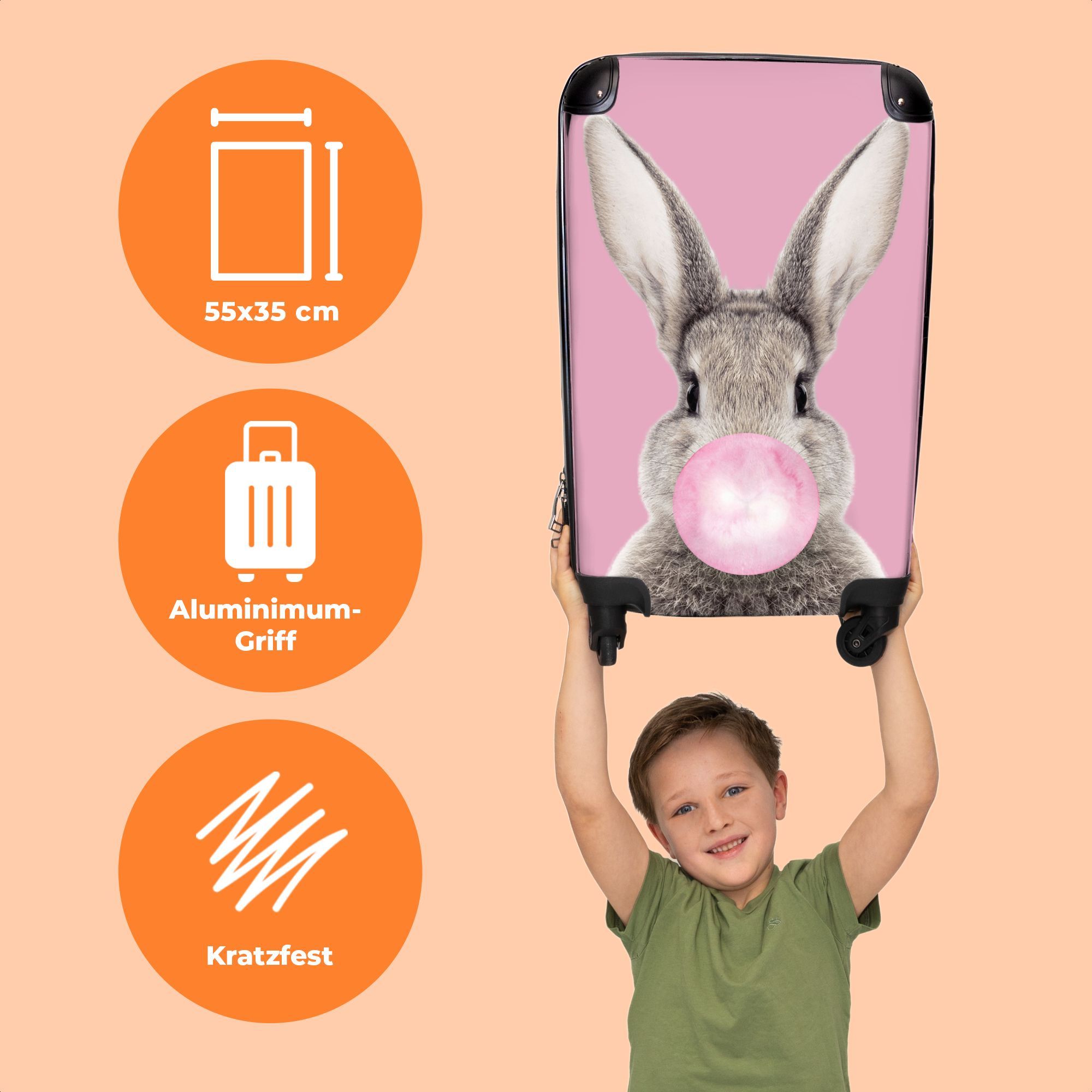 Koffer - Handgepäck - Kaninchen - Kinder - Kaugummi - Rosa - Trolley - Rollkoffer -