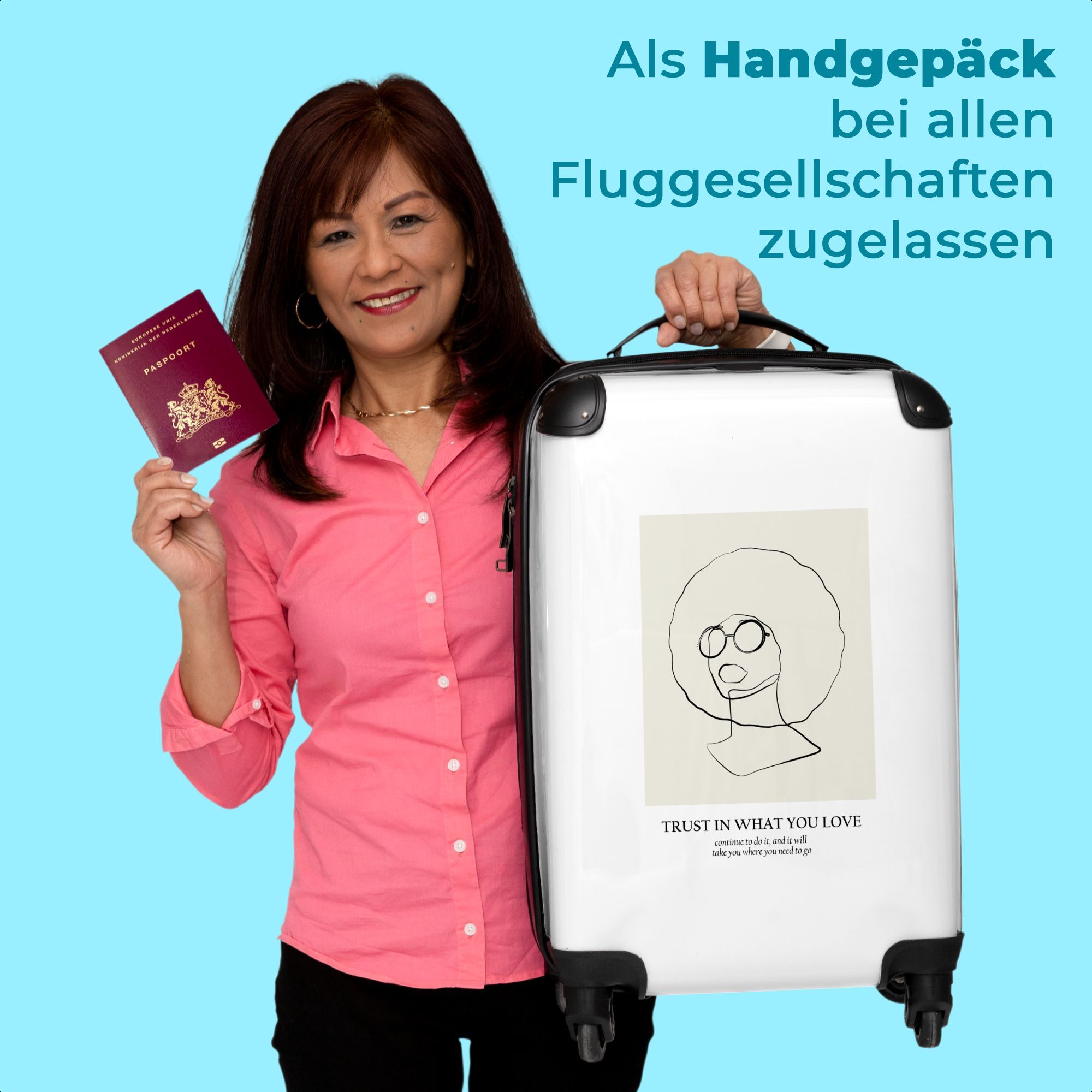 Koffer - Handgepäck - Porträt - Zitat - Pastell - Entwurf - Trolley - Rollkoffer -