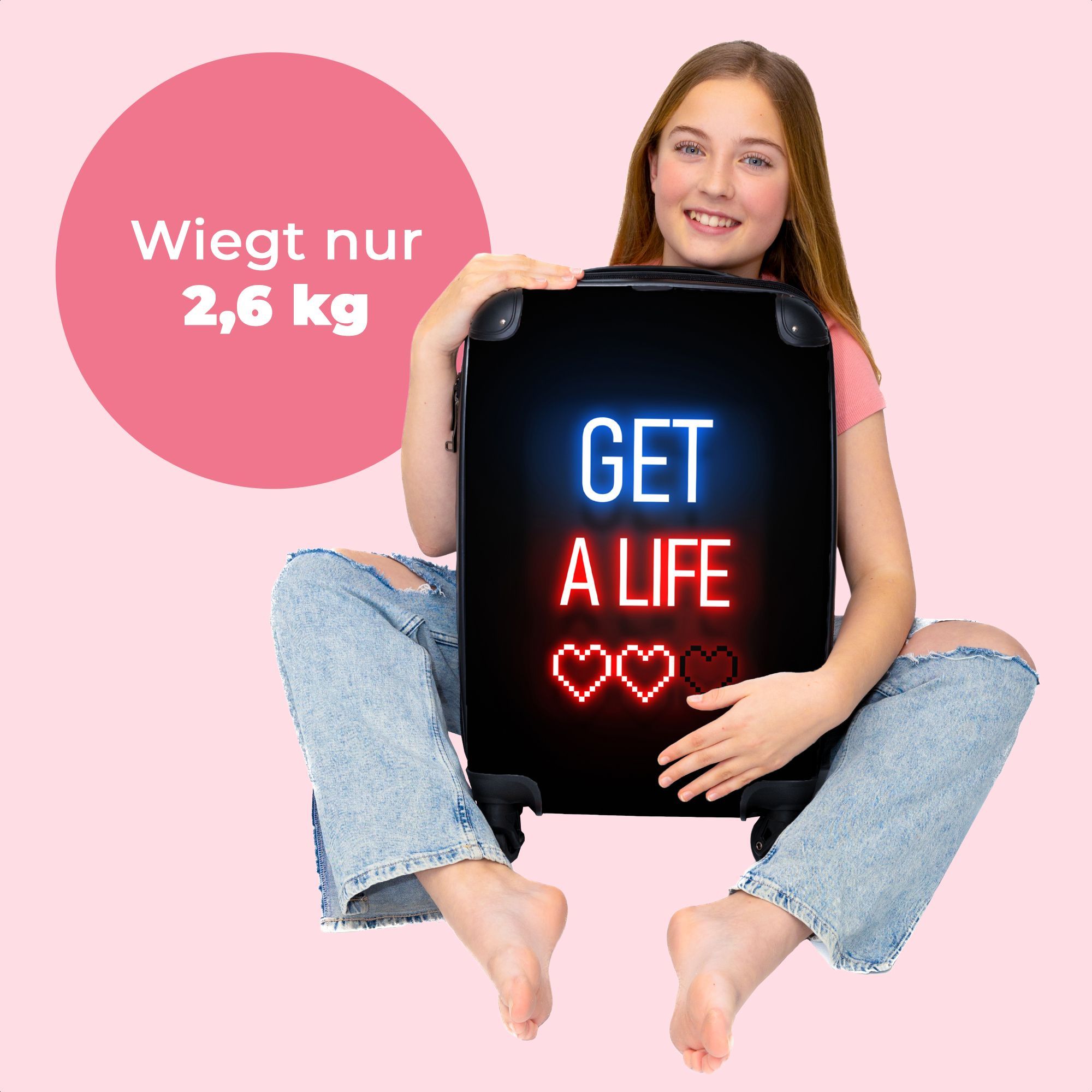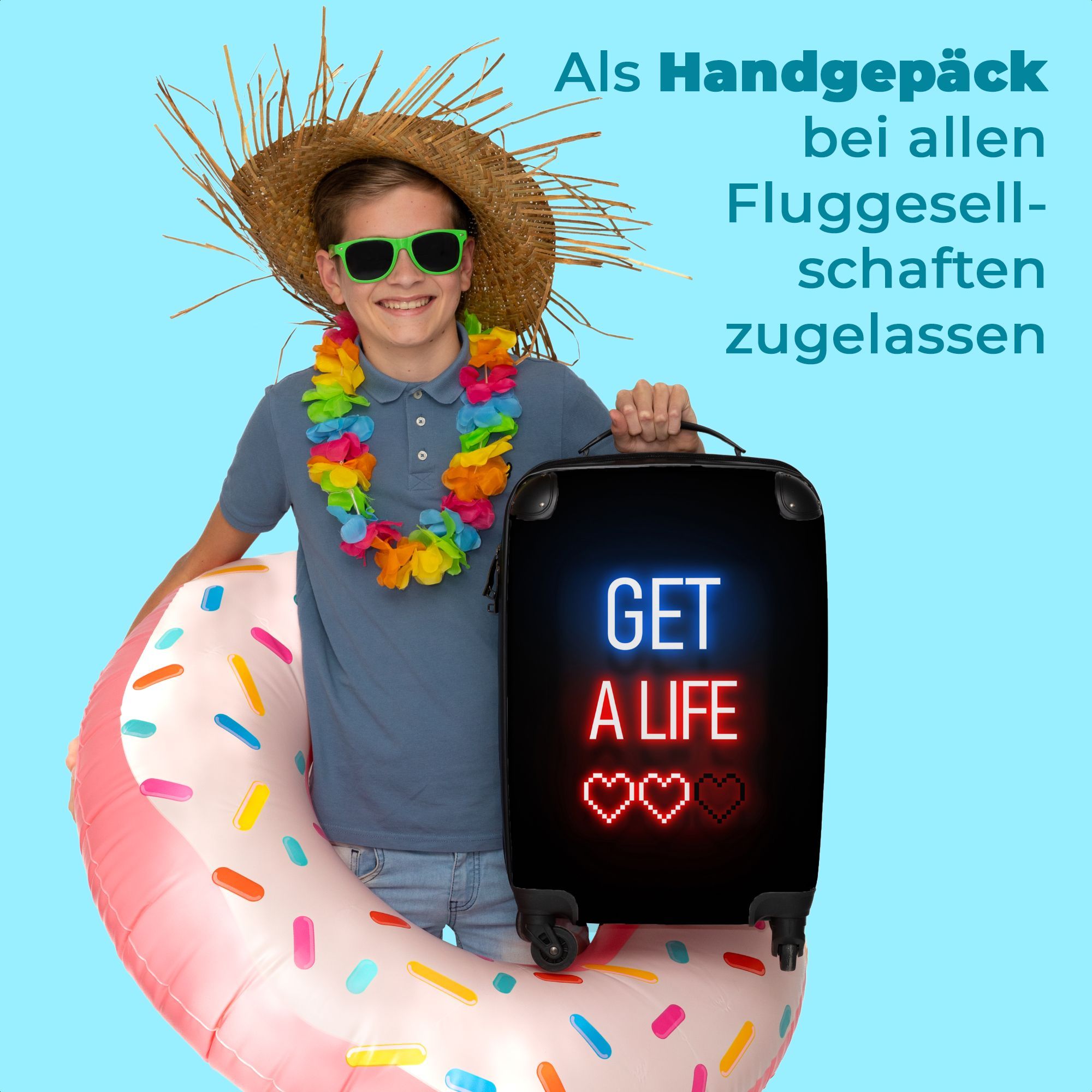 Koffer - Handgepäck - Spiele - Text - Get a life - Neon - Schwarz - Trolley -