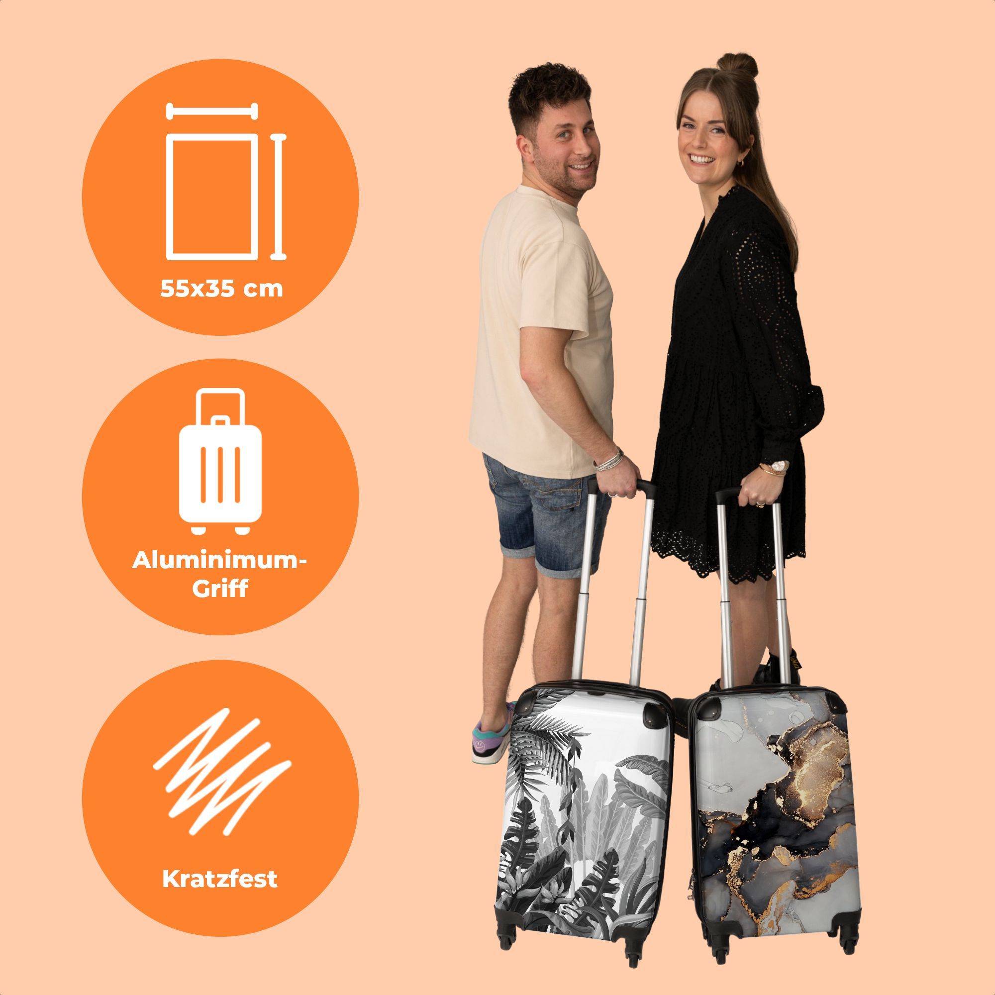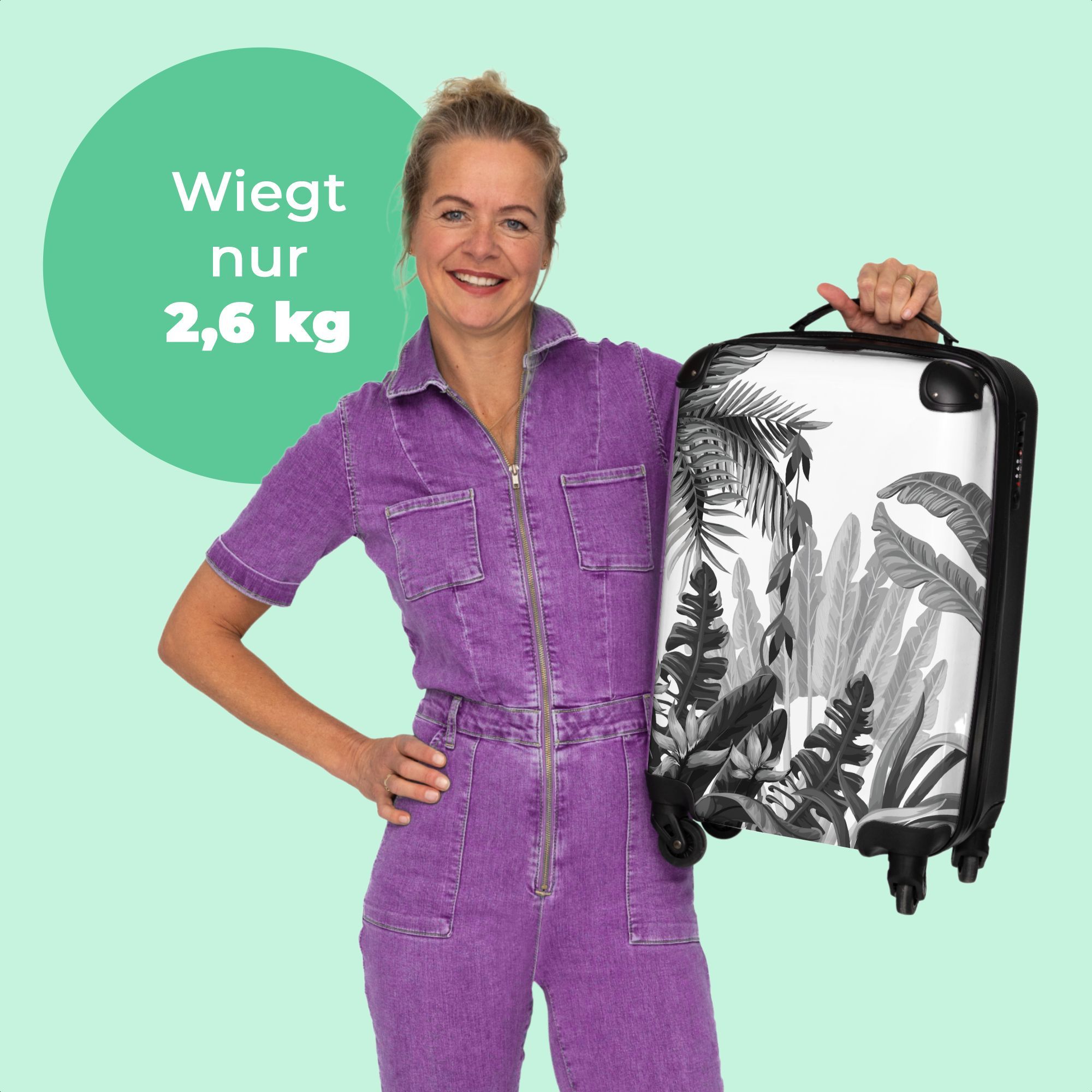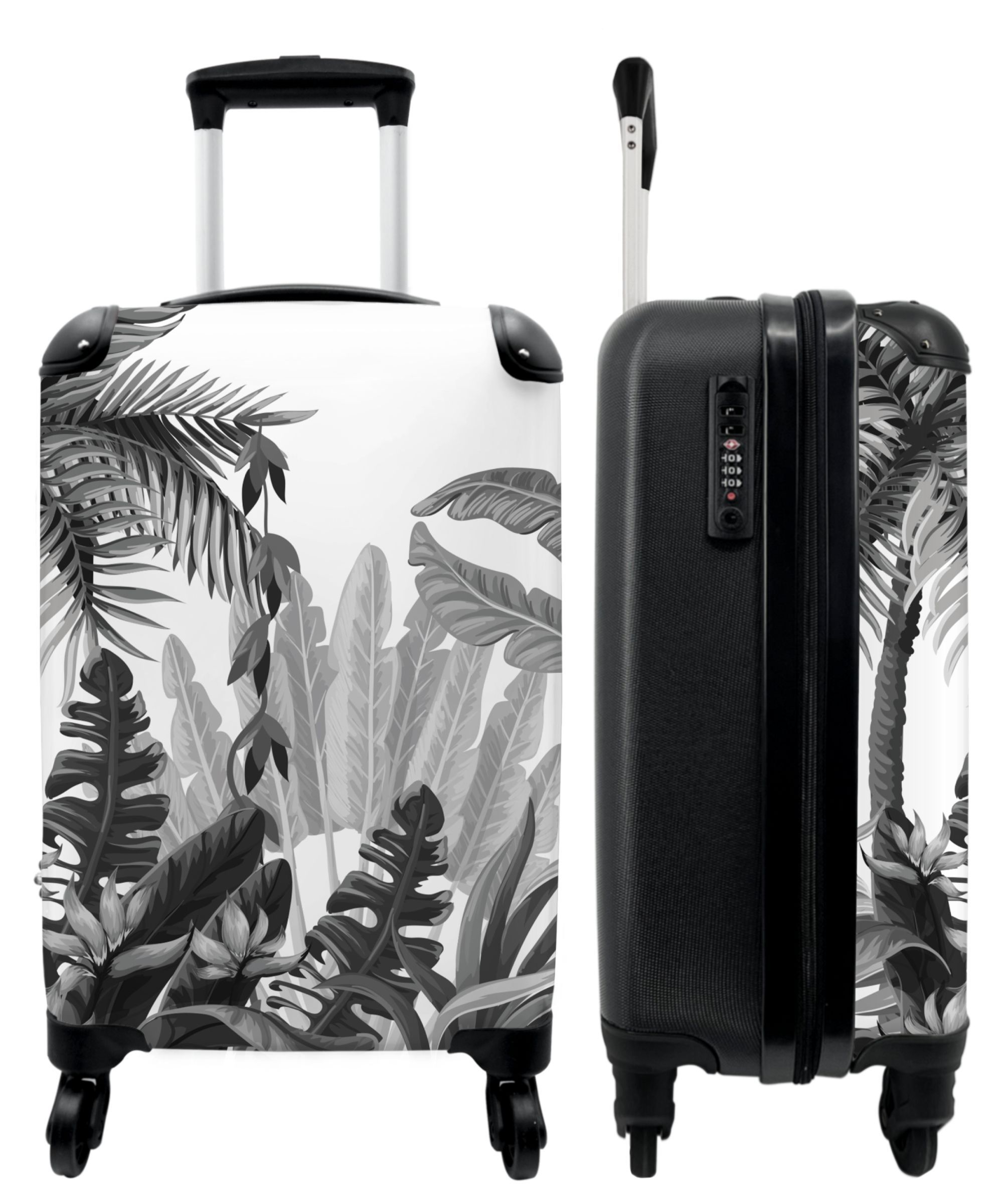 Koffer - Handgepäck - Vintage - Dschungel - Blätter - Pflanzen - Schwarz und weiß -