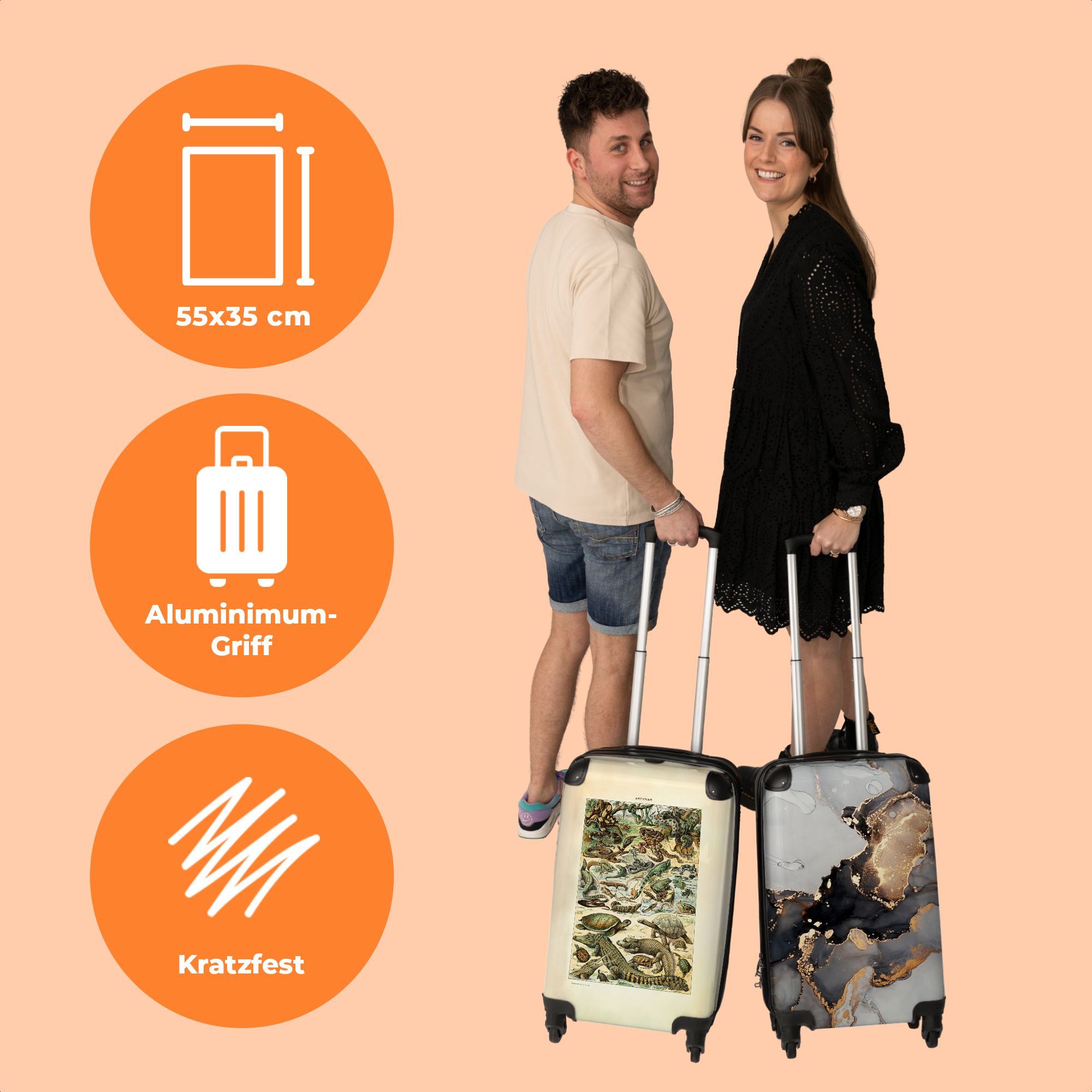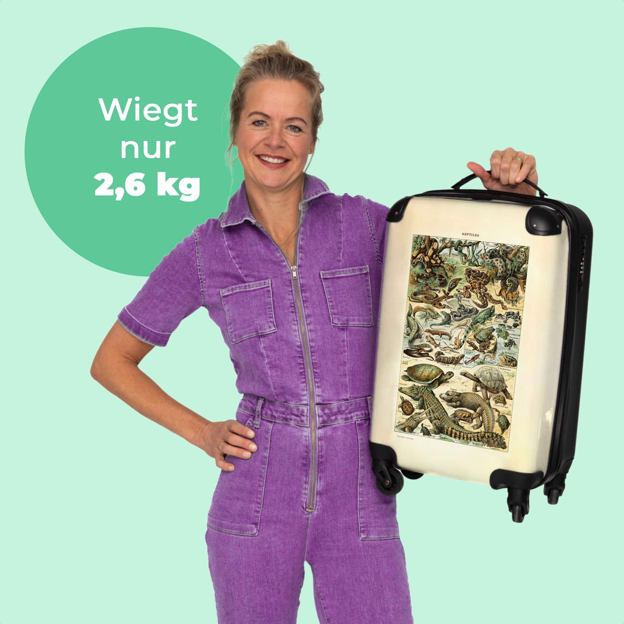Koffer - Handgepäck - Vintage - Reptilien - Tiere - Illustration - Kunst - Trolley -