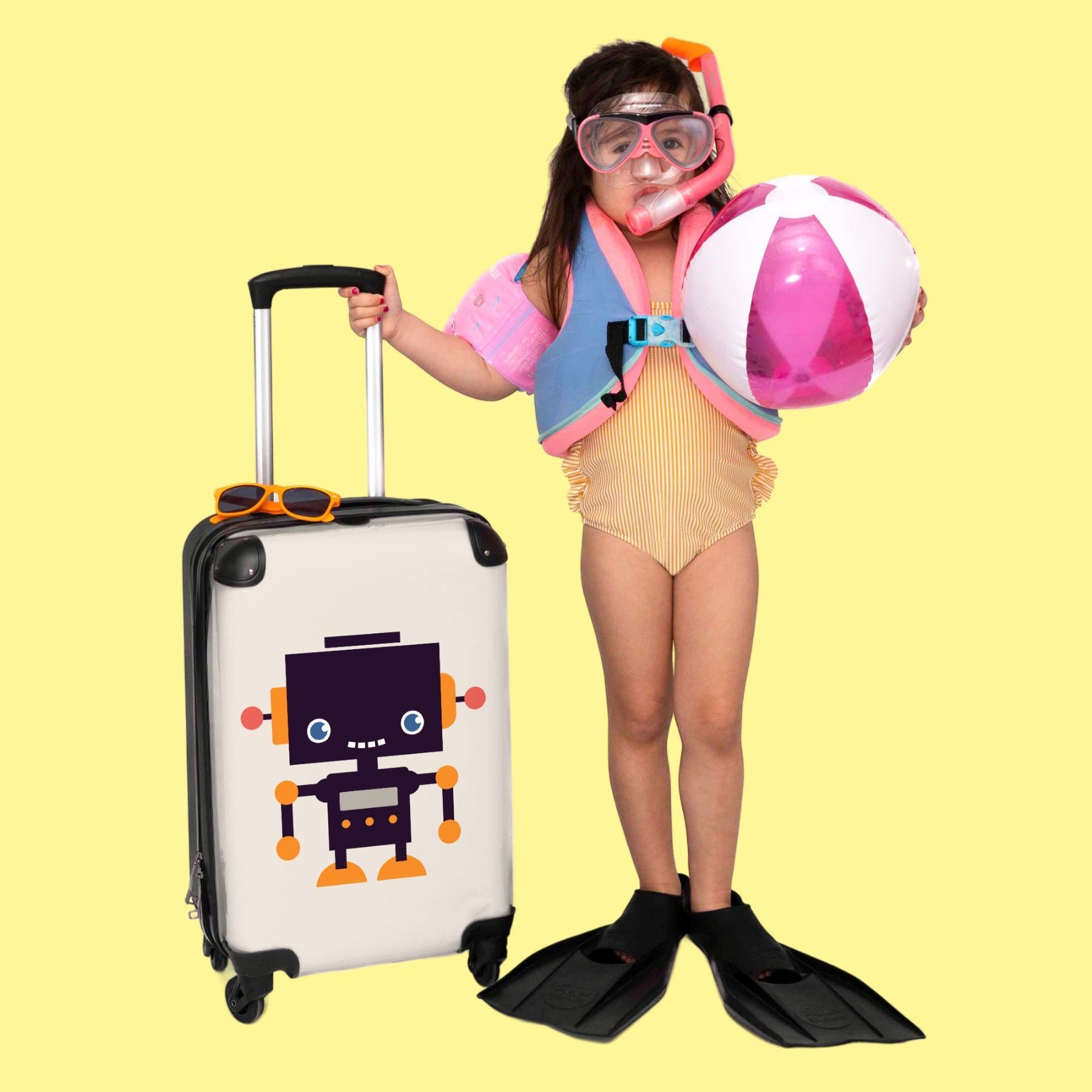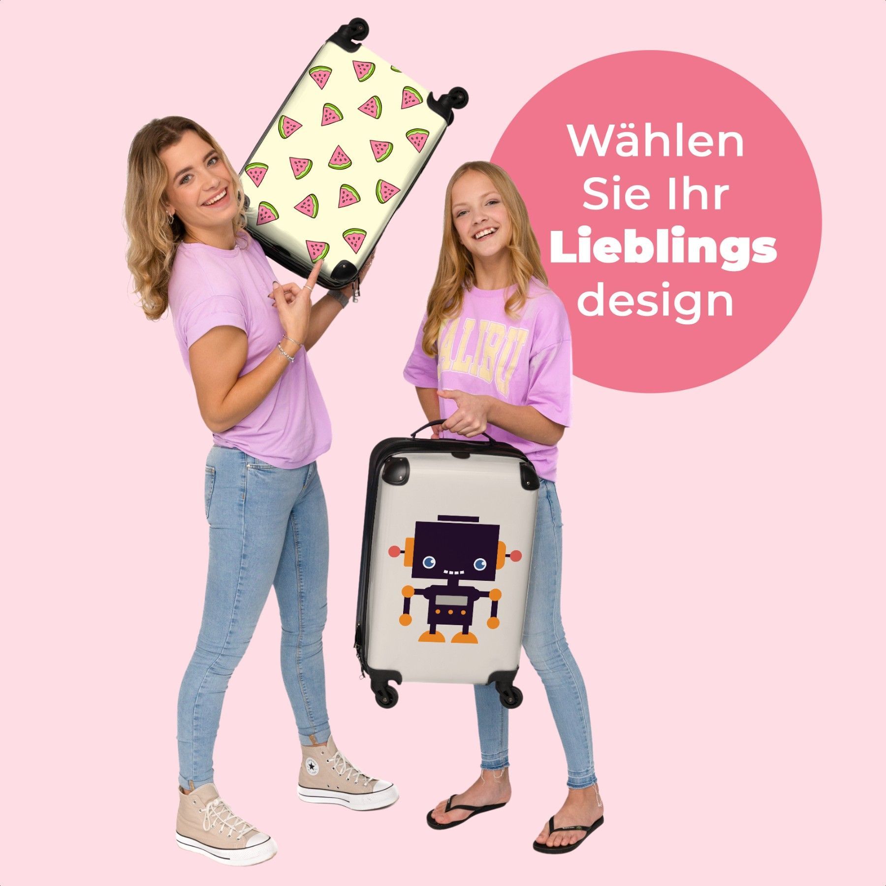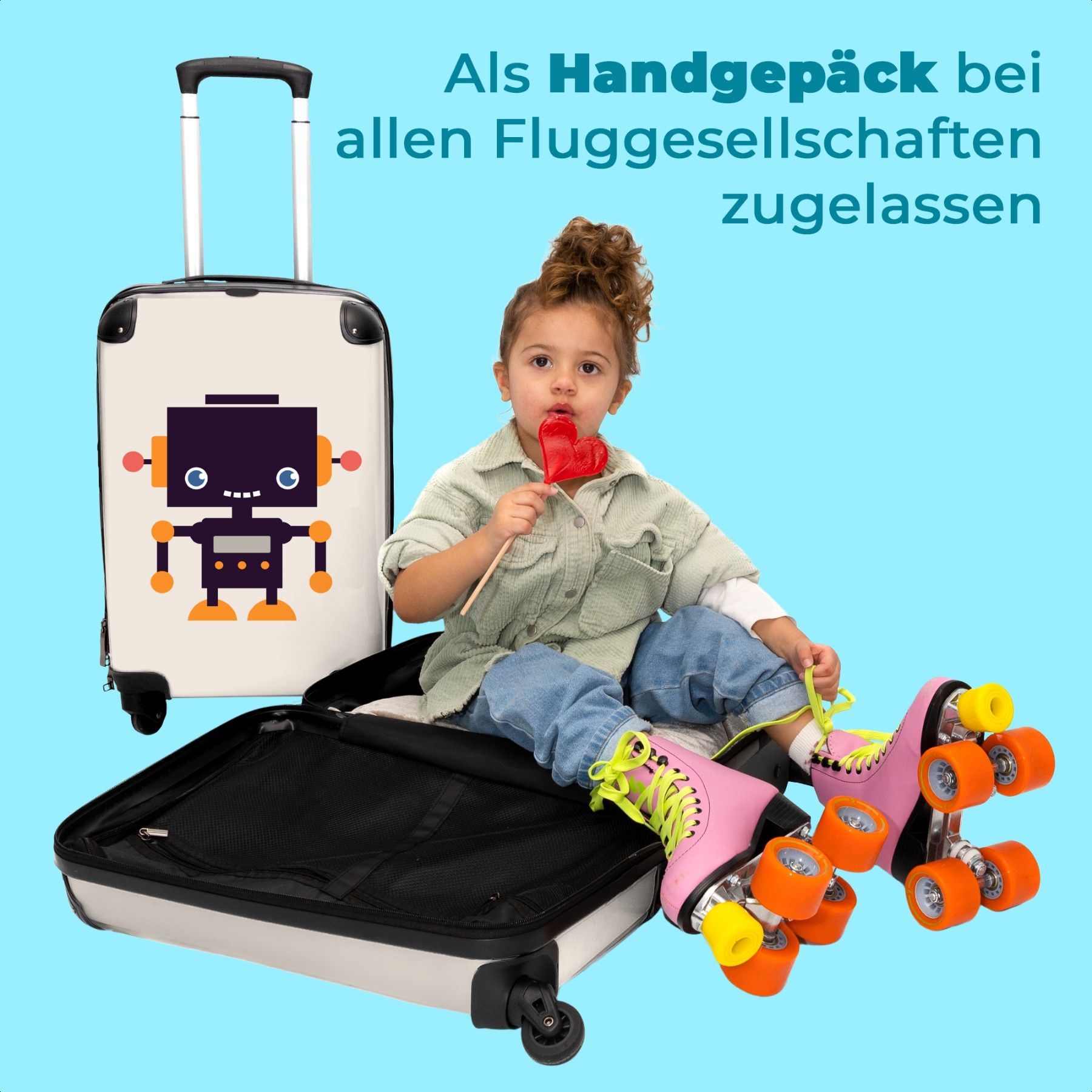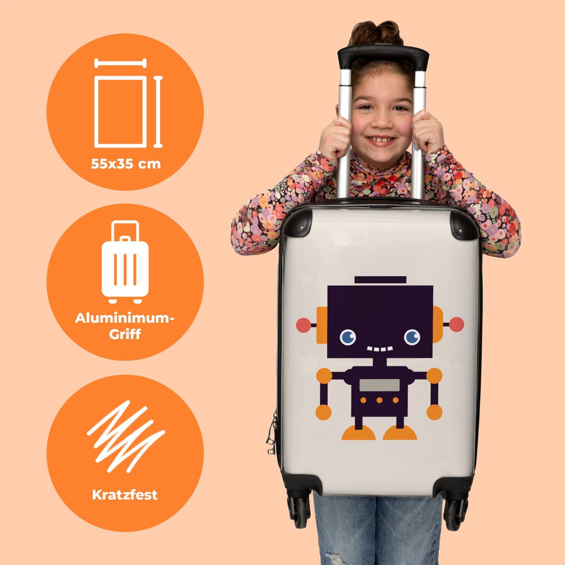 Koffer mit 4 Rollen - Koffer - Handgepäck - Trolley Koffer - Reisen - Mädchen - Robot