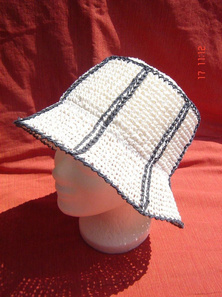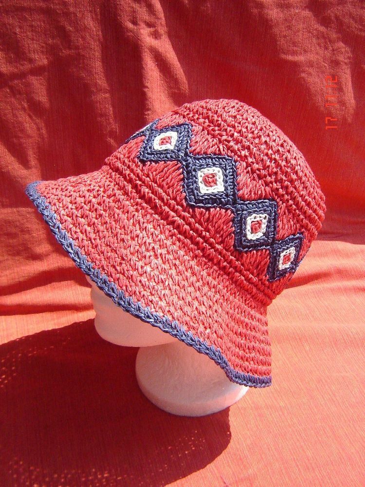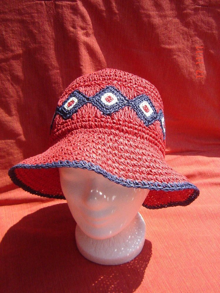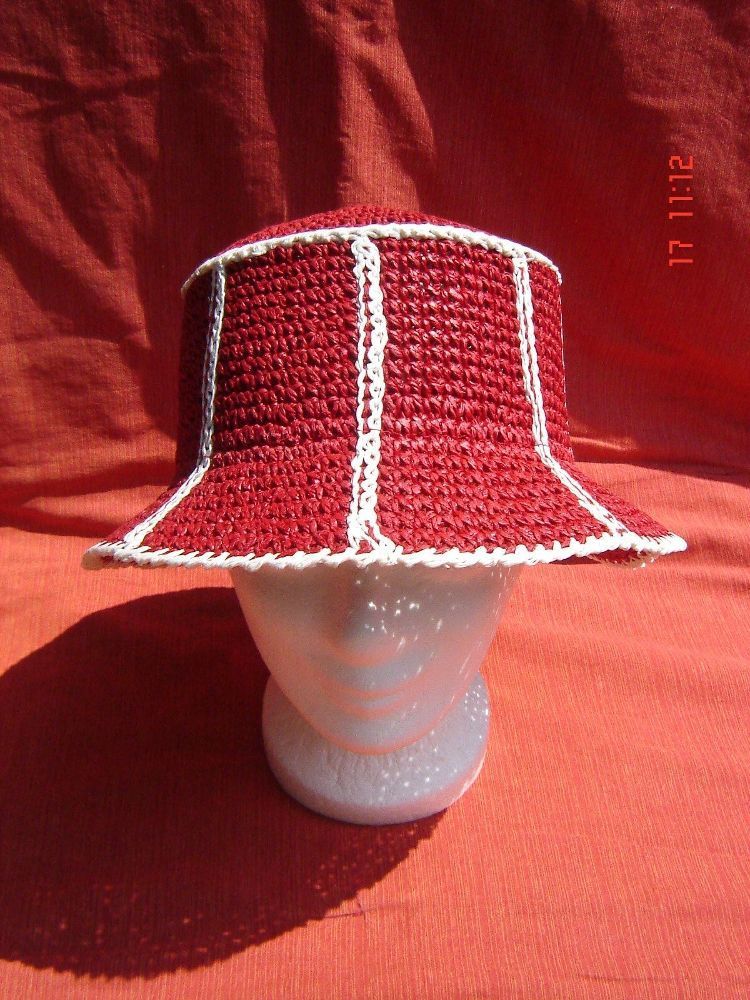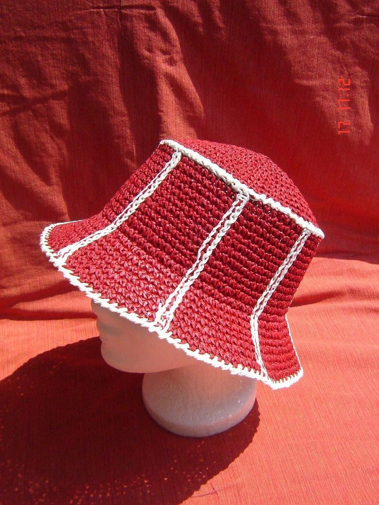 Kofferhut Sommerhut luftig knautschbar Häkelhut rot oder weiß Reisehut Badehut p