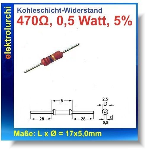 Kohleschichtwiderstand, 470 Ohm, 0,5 Watt, 5% Widerstand, axial, 25 St.