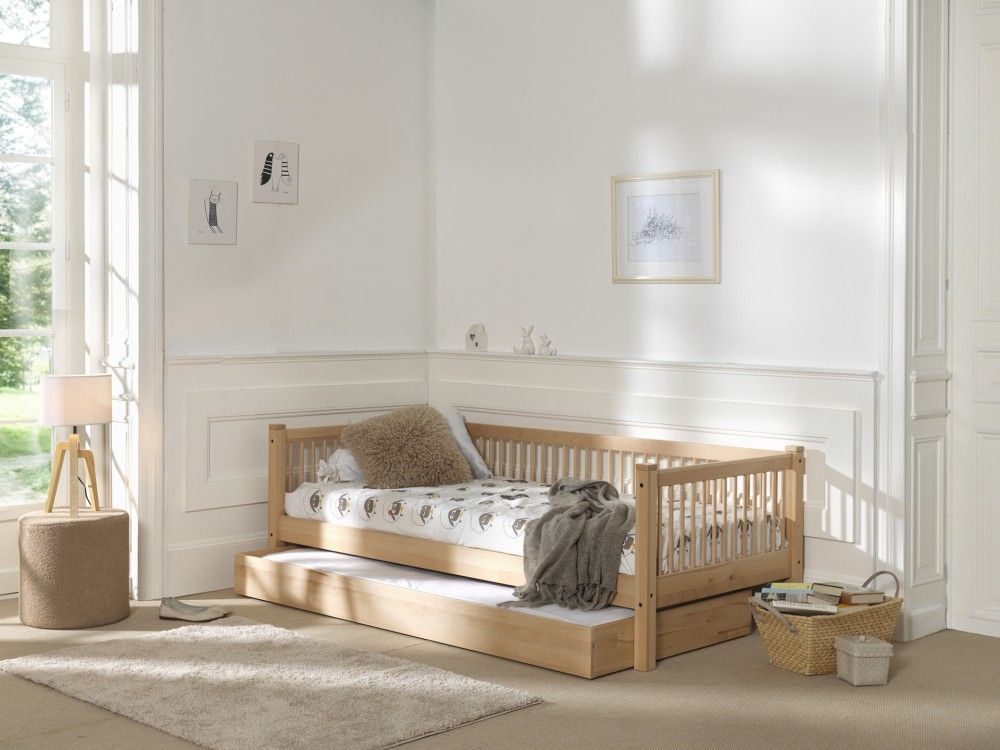VIPACK Kojenbett 90x200 Bettschublade Lattenrost Kinder- Jugendbett Buche massiv Natur