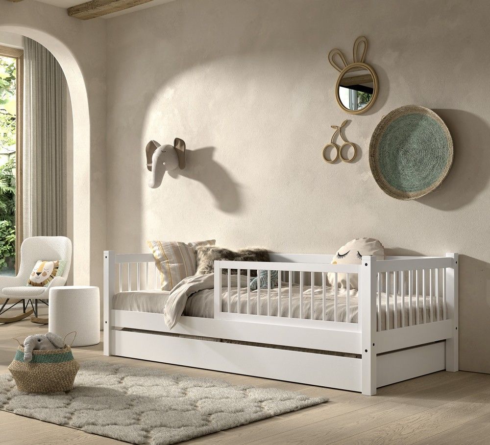 VIPACK Kojenbett 90x200 Bettschublade Rausfallschutz Lattenrost Jugendbett Buche Weiß