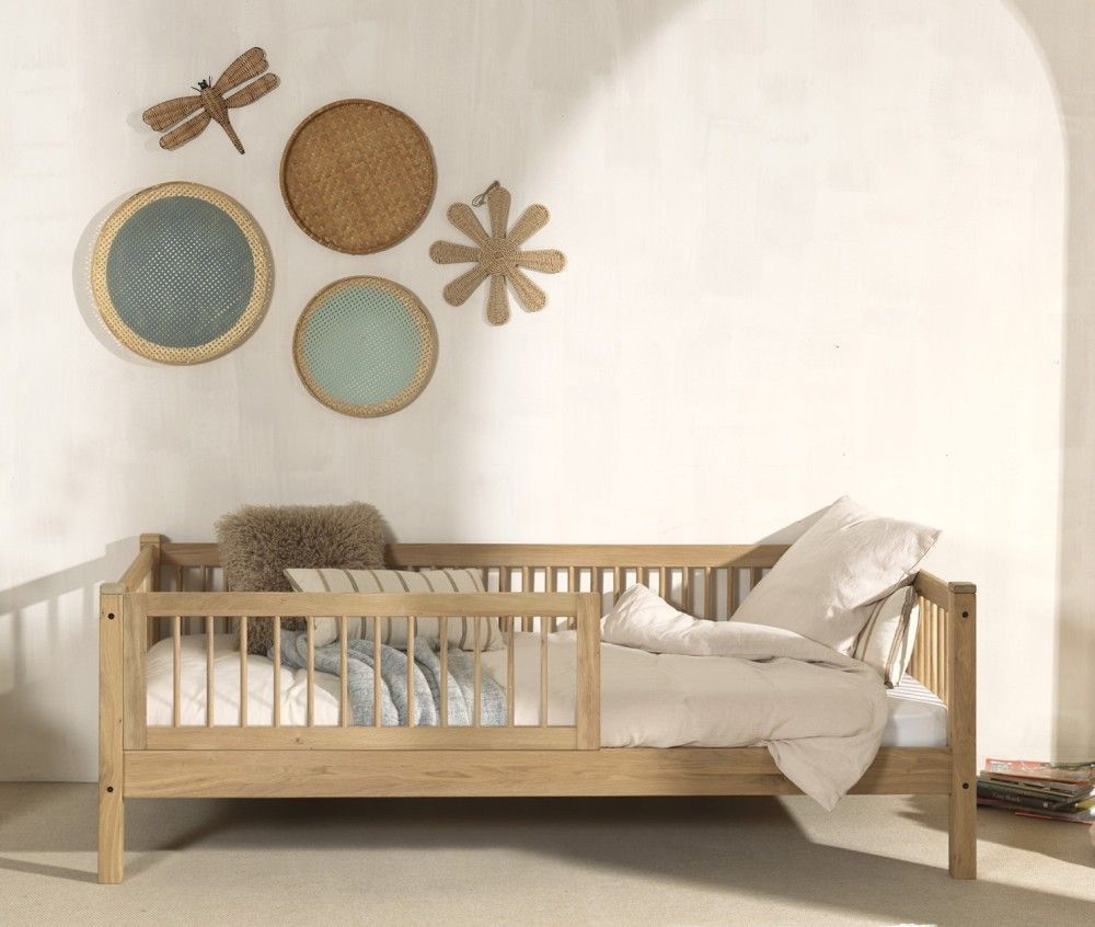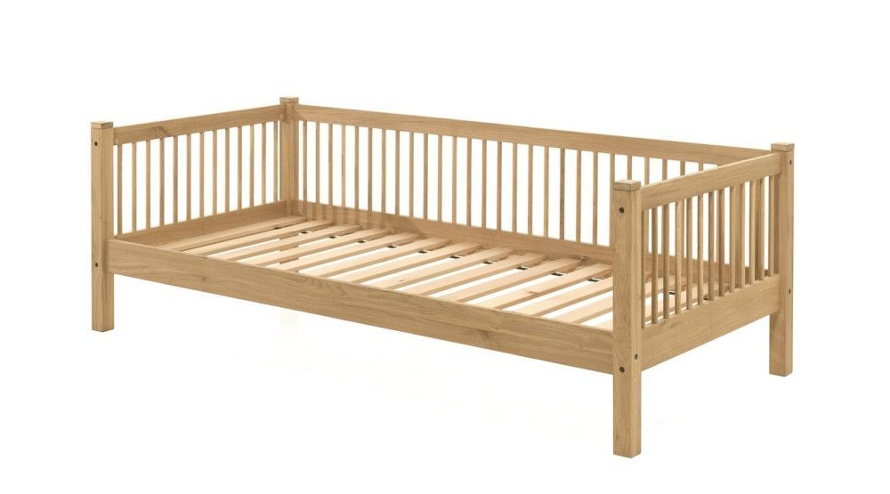 VIPACK Kojenbett 90x200 Lattenrost Rausfallschutz Kinder- Jugendbett Eiche massiv geölt