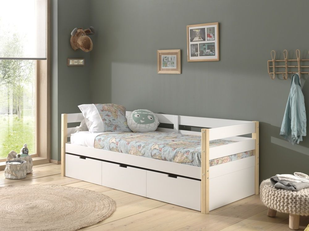 VIPACK Kojenbett mit Bettschublade Lattenrost 90x200 Kinderbett Einzelbett