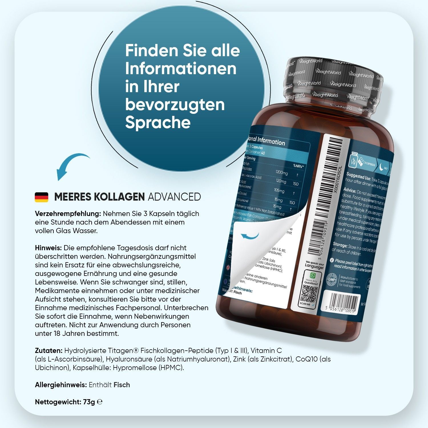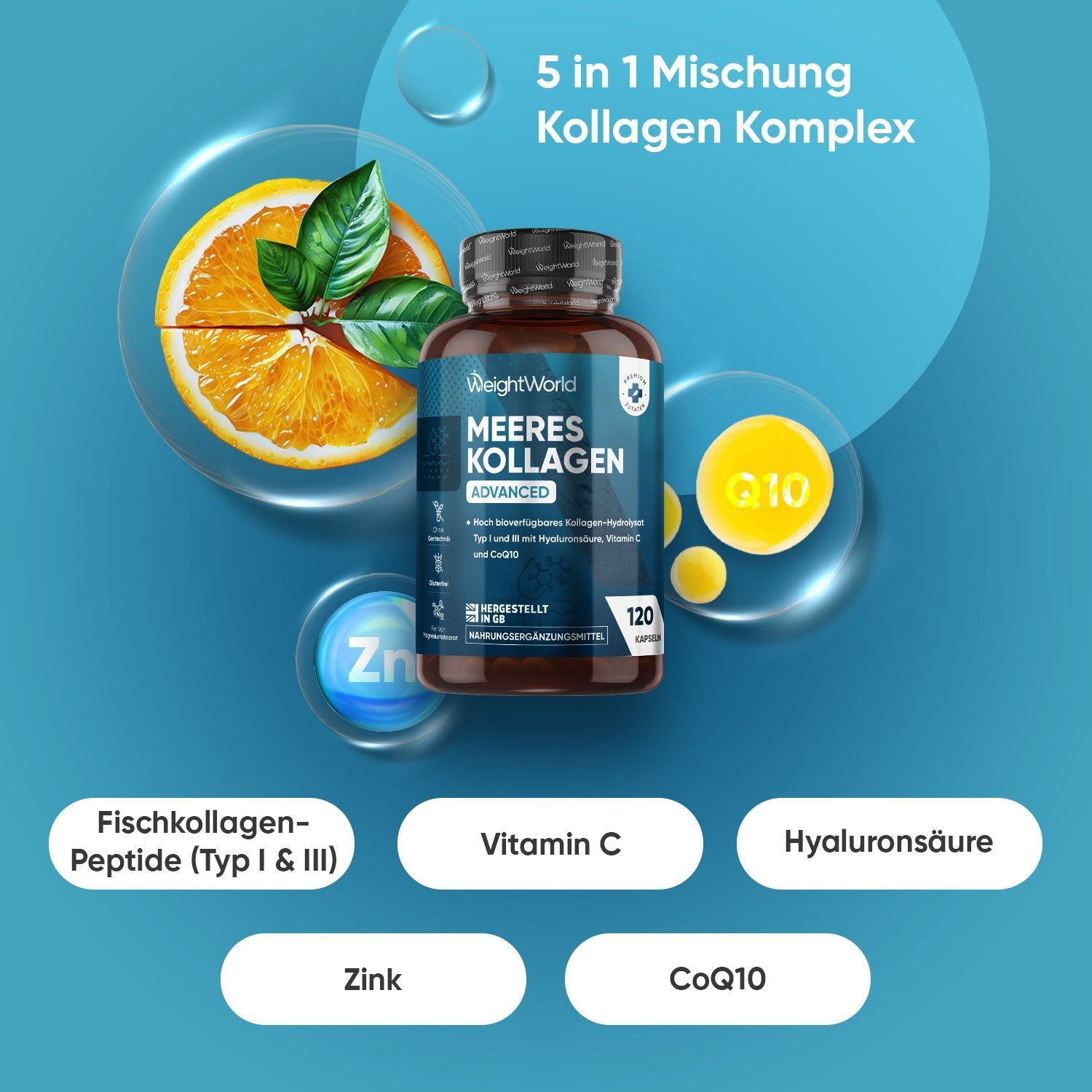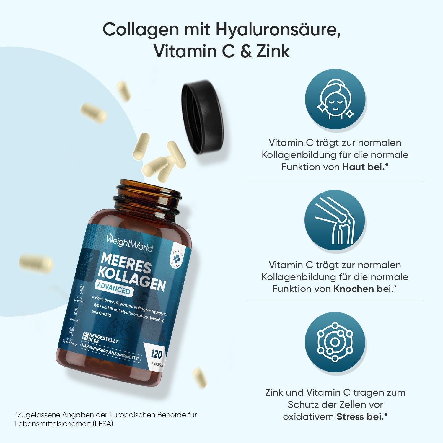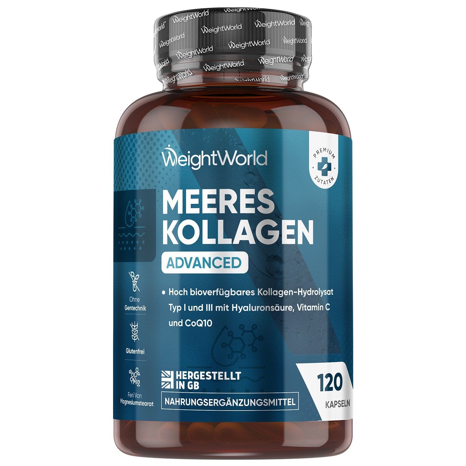 120 Collagen Hyaluronsäure Kapseln - Für Haut, Haare - WeightWorld