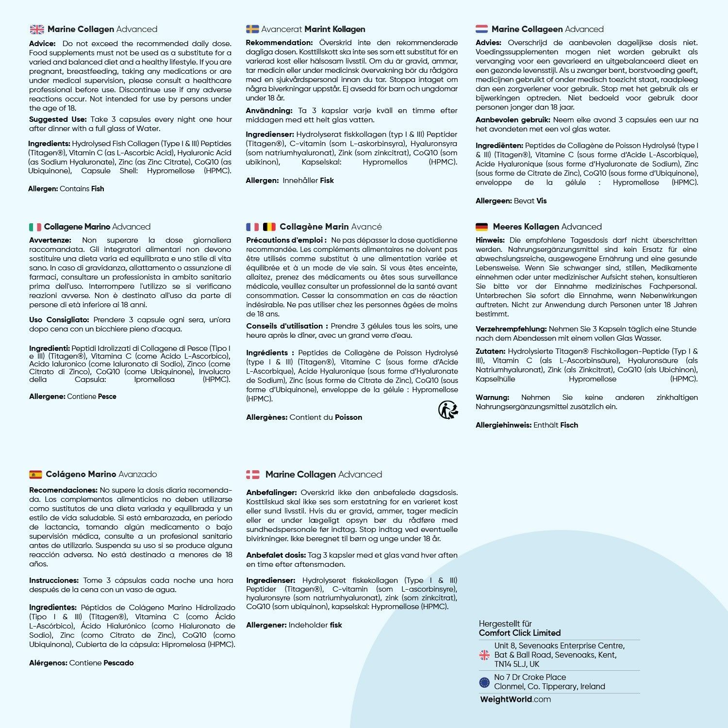 Kollagen Komplex - 1200mg Meereskollagen Hydrolysat - Mit Hyaluron, CoQ10, Vitamin C