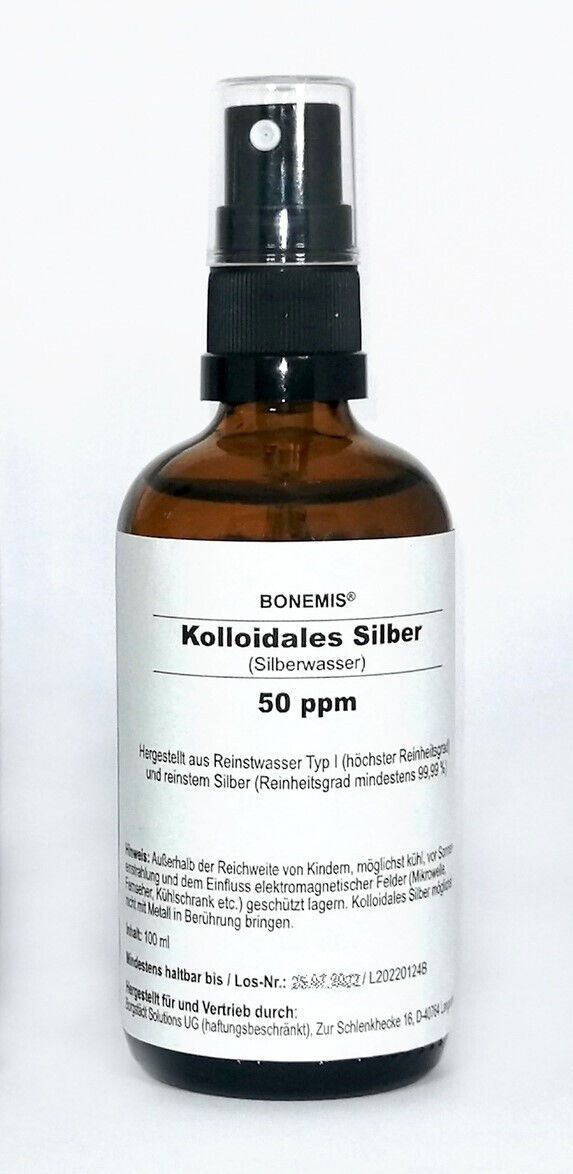 Kolloidales Silber, 50 ppm, hochreine Premiumqualität, 100 ml in Sprühflasche