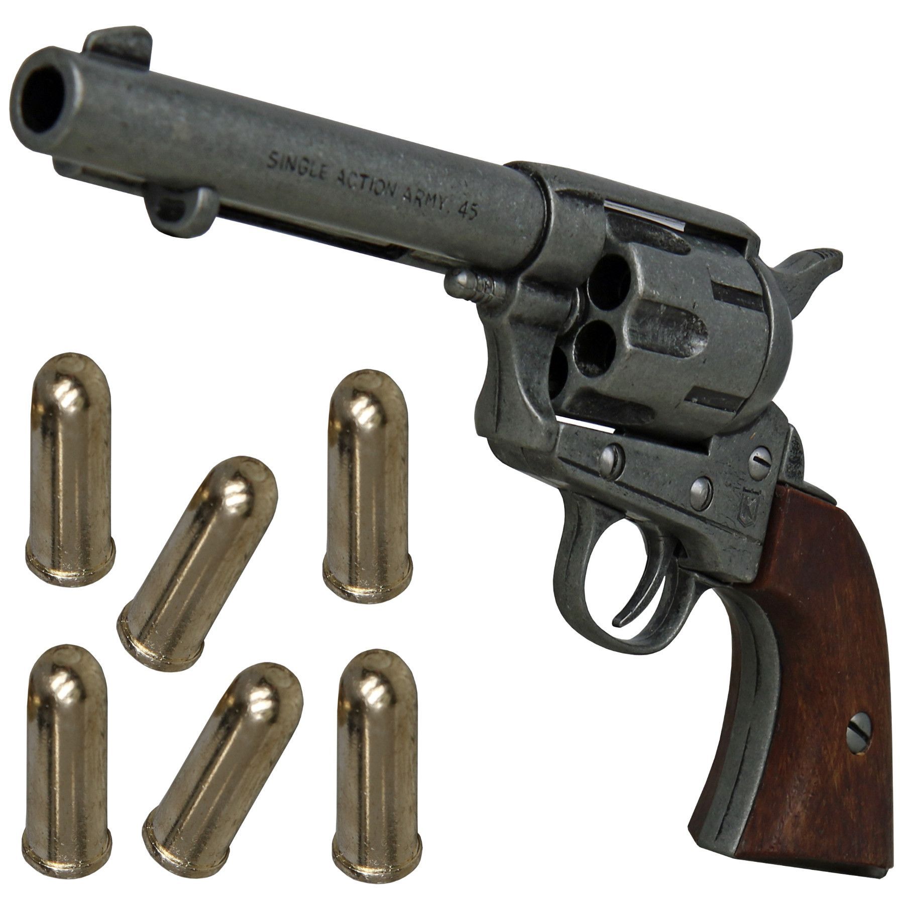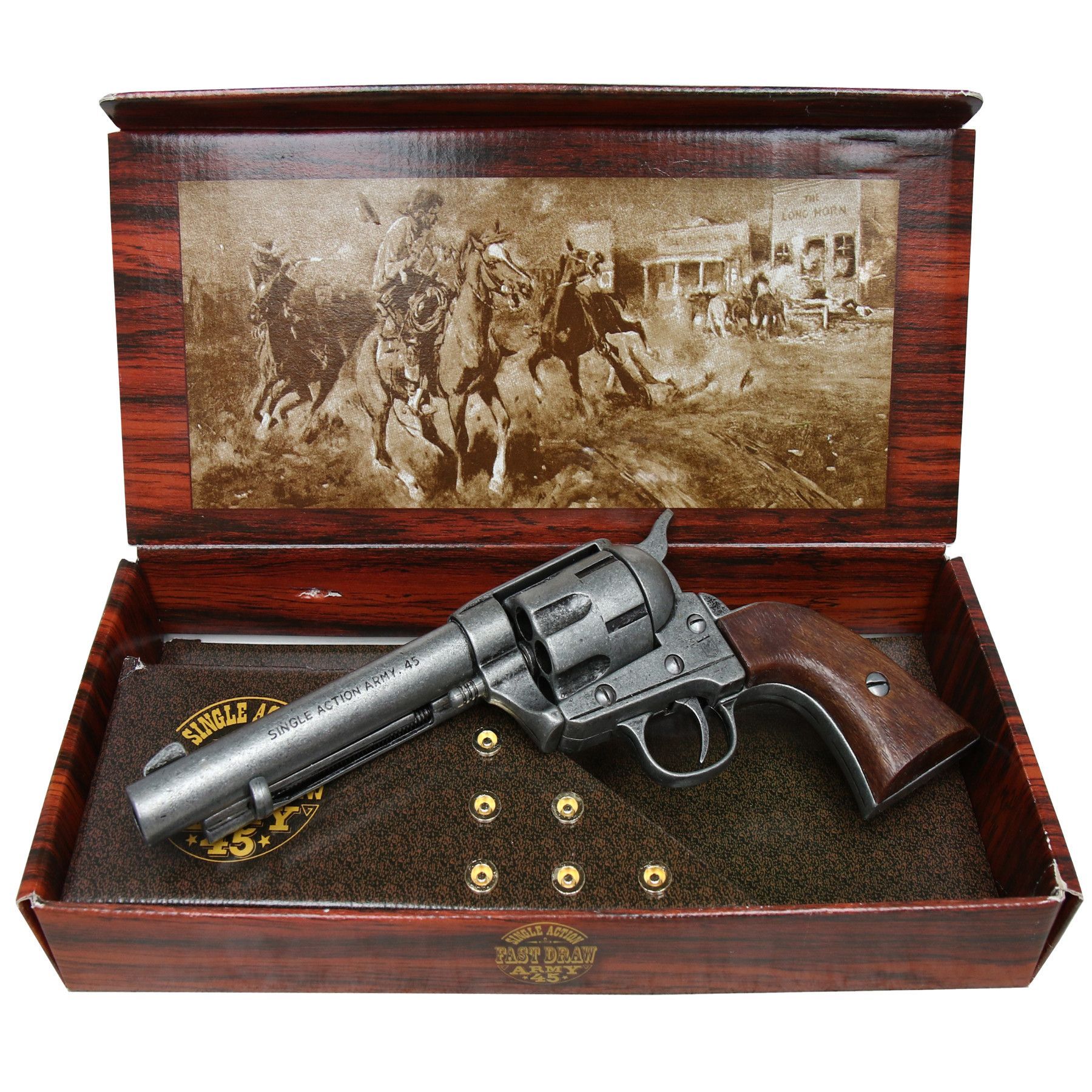 Kolser Deko Revolver Single Action 45 mit Patronen Aufbewahrungskarton Historie