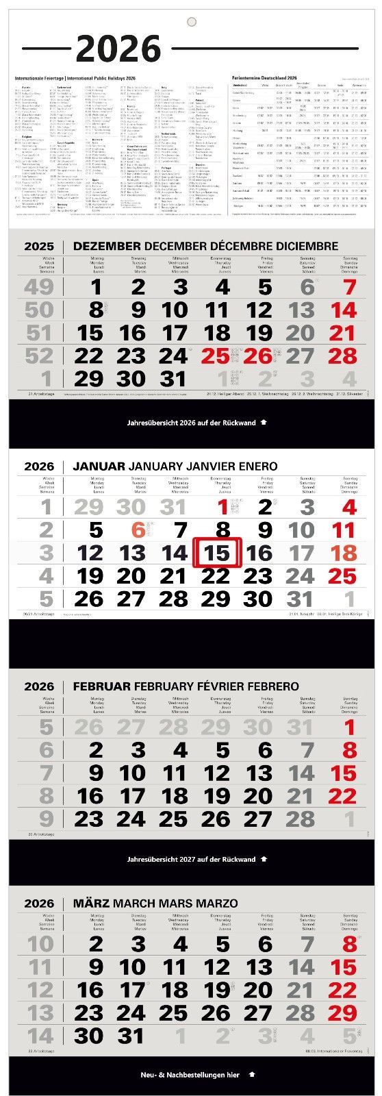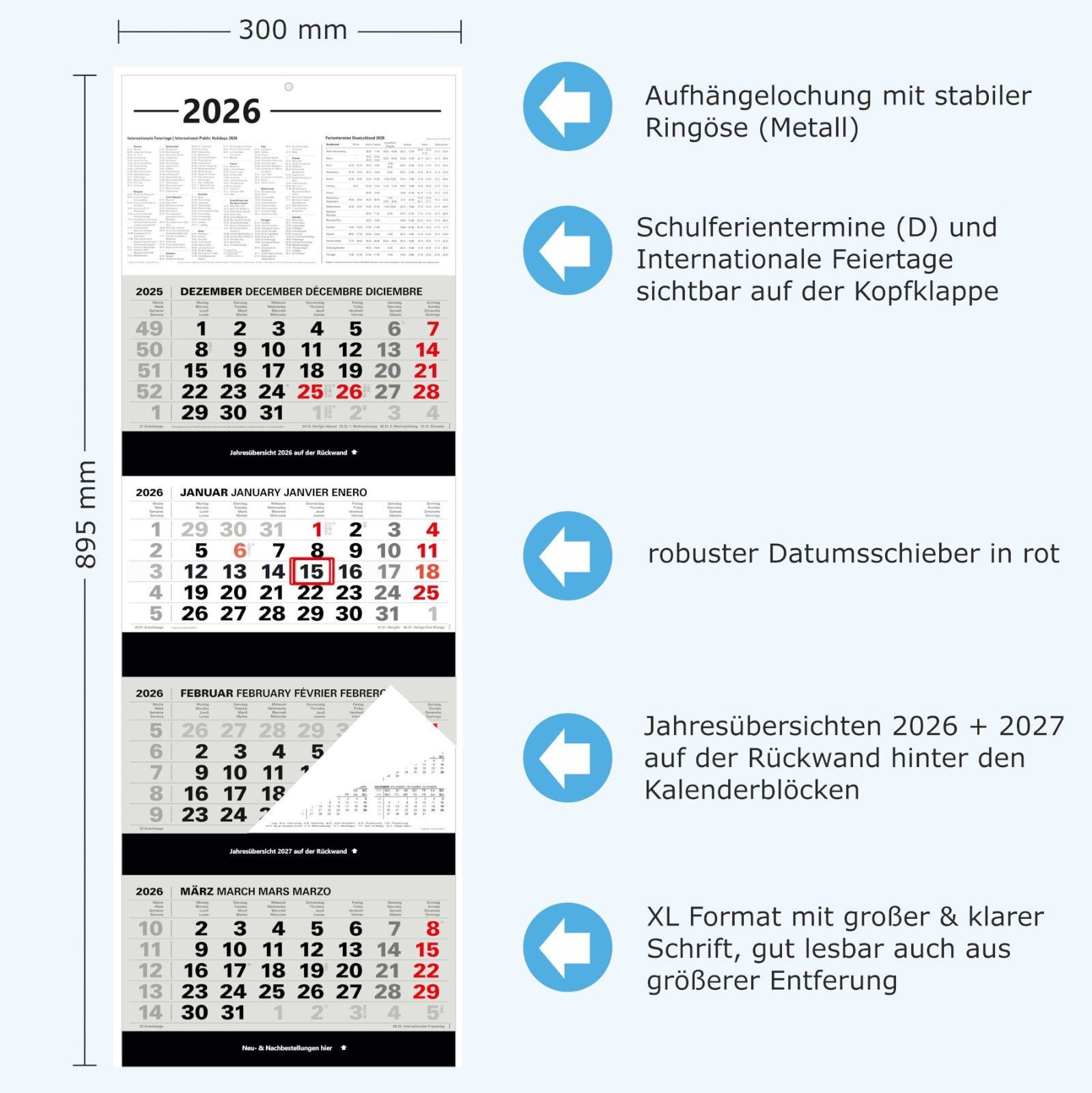 Kombi 4-Monatskalender 2026 Bürokalender großer Wandkalender vier Monate