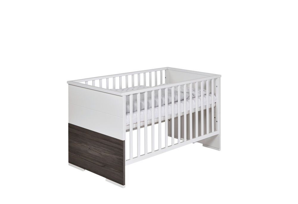 Schardt Kombi-Kinderbett 70x140 -Gitterbett Babybett Schlupfsprossen-Weiß/Fleetwood