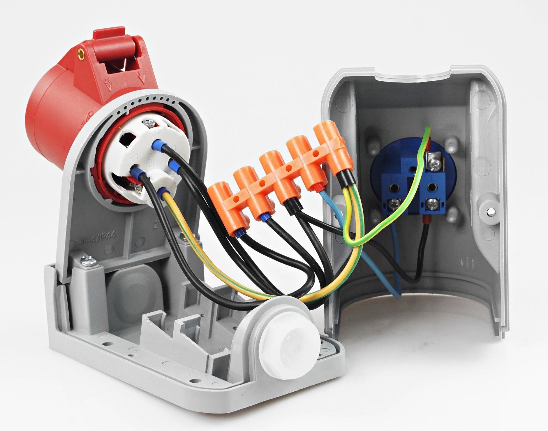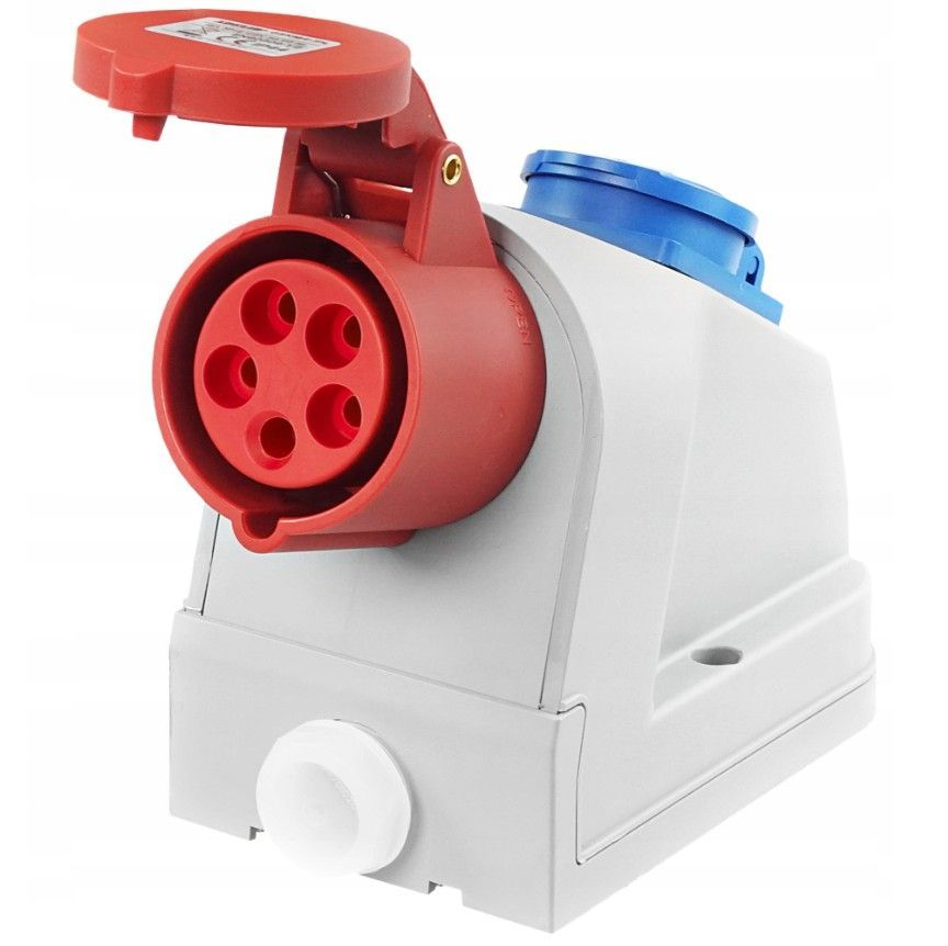 Kombi Wandsteckdose CEE 16A 5-polig IP44 mit 230V Steckdose CEE Combo Technische Daten: Material: Kunststoff - Feuerfestes PA6 Kontakt: Messing vernickelt Anzahl der Kontakte: 3P + Z + N und 1P + N + PE Nennstrom: 16A Nennspannung:AC 220-380V 240-415V Euro Schutzart: IP44 Anschlußklemmen: bis 10 mm2