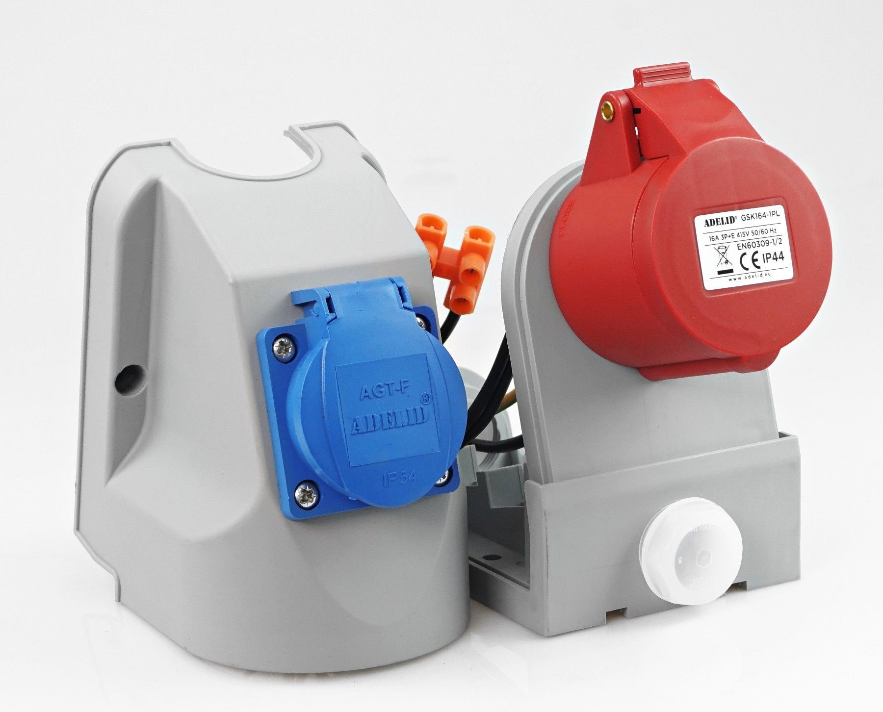 Kombi Wandsteckdose CEE 16A 5-polig IP44 mit 230V Schutzkontakt-Steckdose CEE Combo