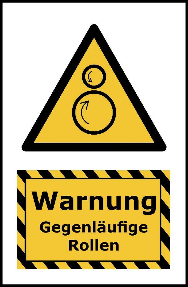 Kombi-Warnschild Gegenläufige Rollen Kunststoff mit Klebepads EU-Norm |200x300mm