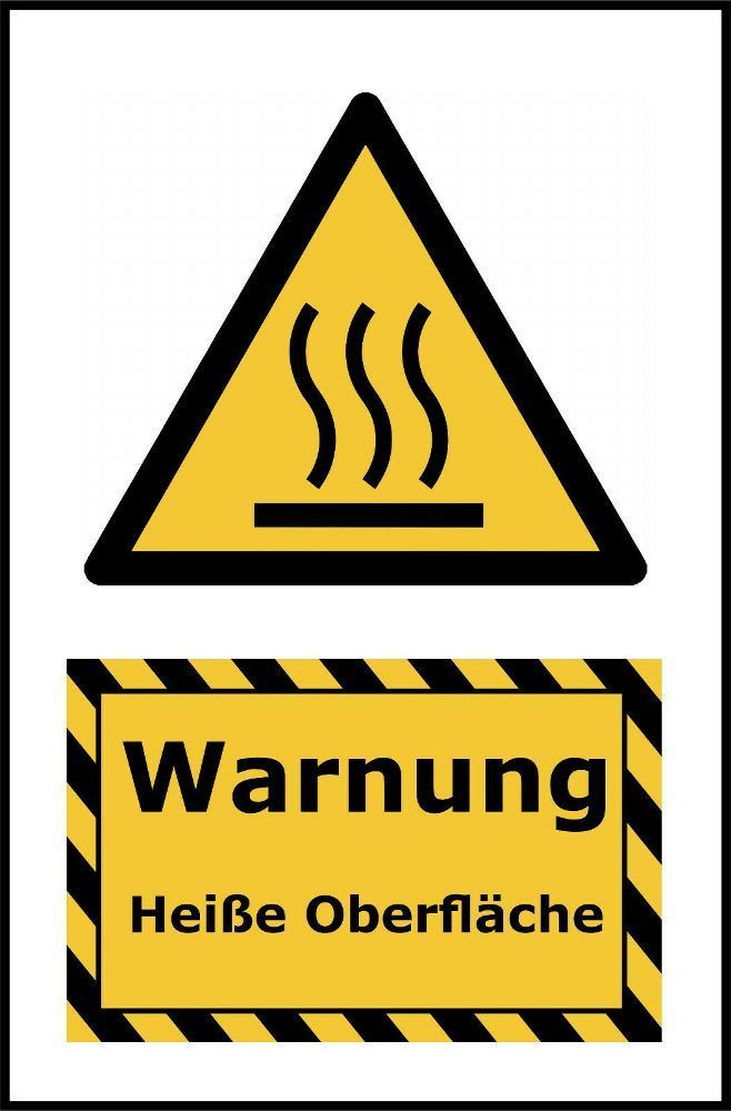 Kombi-Warnschild Heiße Oberfläche Kunststoff + Klebepads Europäische Norm 20x30cm