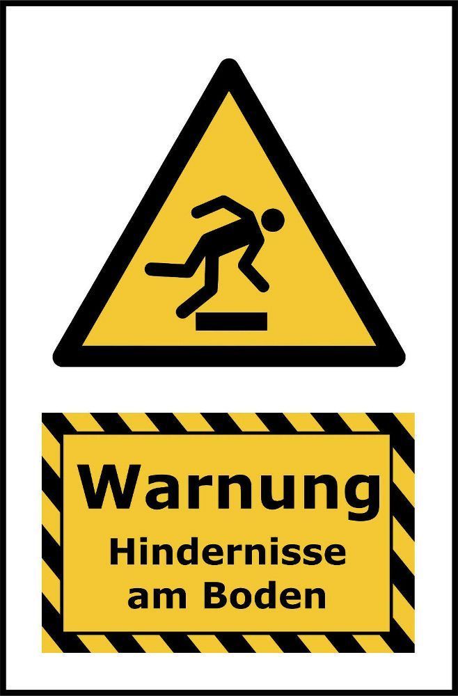 Kombi-Warnschild Hindernisse am Boden I EU-Norm I PVC + Klebepads | 13 x 20cm
