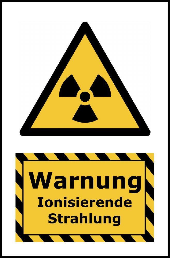 Kombi-Warnschild Ionisierende Strahlung Kunststoffplatte + Klebepads Euro-Norm
