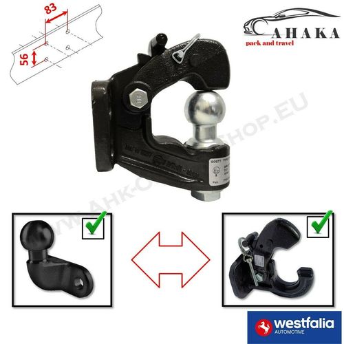 Kombikugelkopf - NATO Hakenkupplung mit Kugel - Lochbild 83x56mm Anschraubplatte