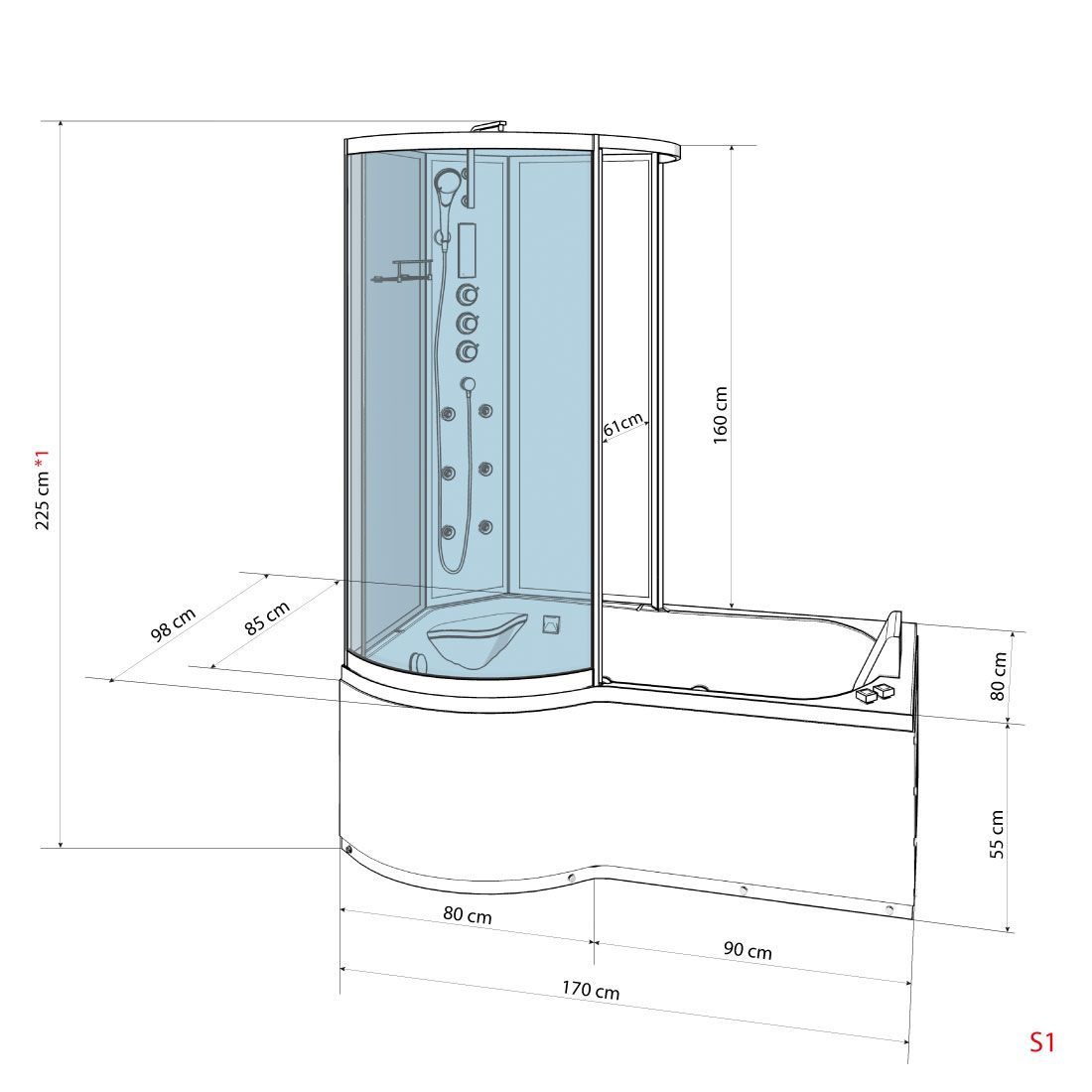 Kombination Whirlpool Dusche K50-R00-WP Duschkabine Wanne 100x170 cm