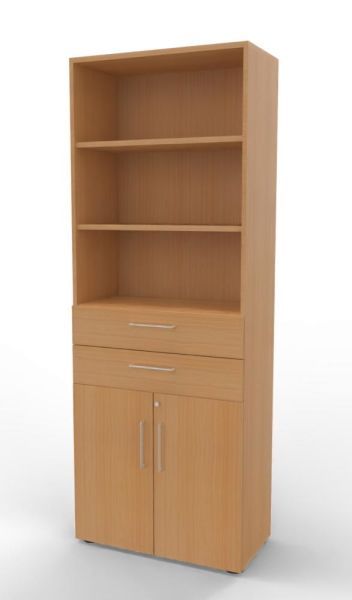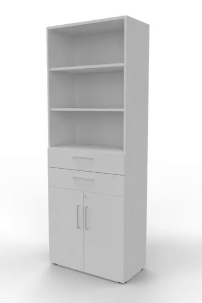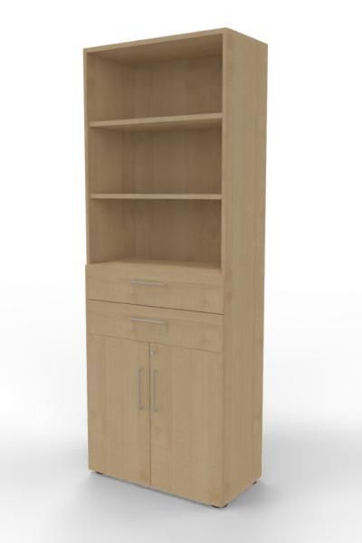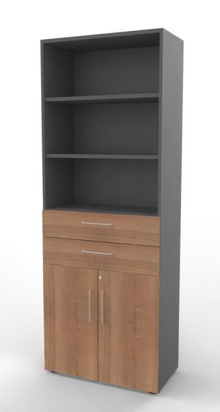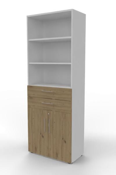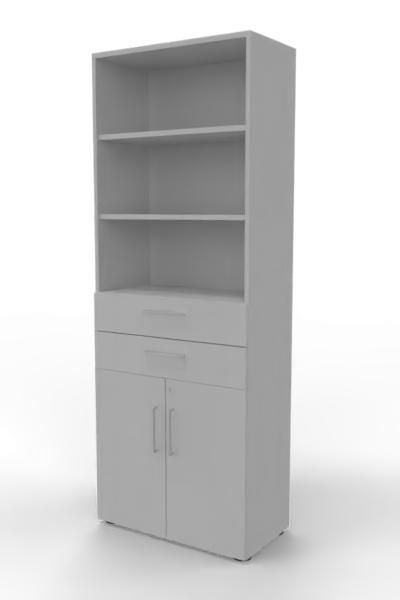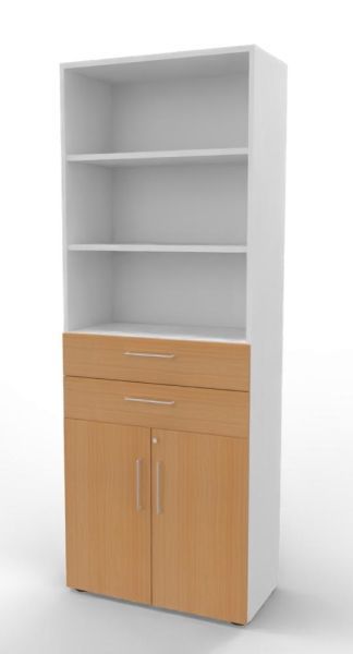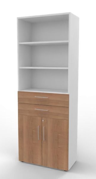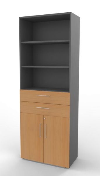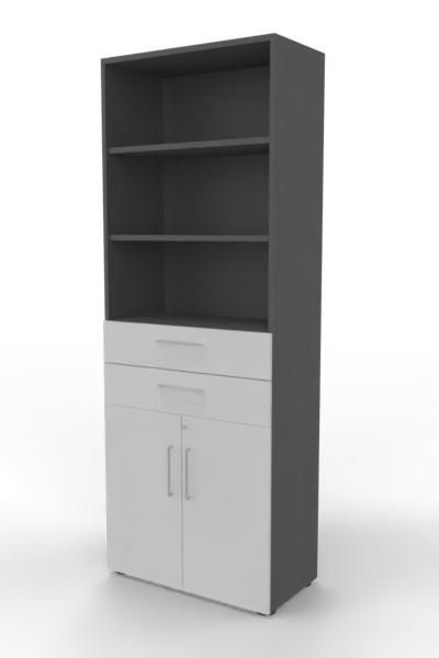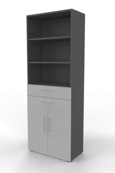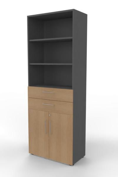Kombischrank VH9TS, 80 x 41,7 x 215,6 cm, Korpus 6 Ordnerhöhen, 2 Schubfächer und Türen 2 Ordnerhöhen. Regal mit Türen und Schubkästen.