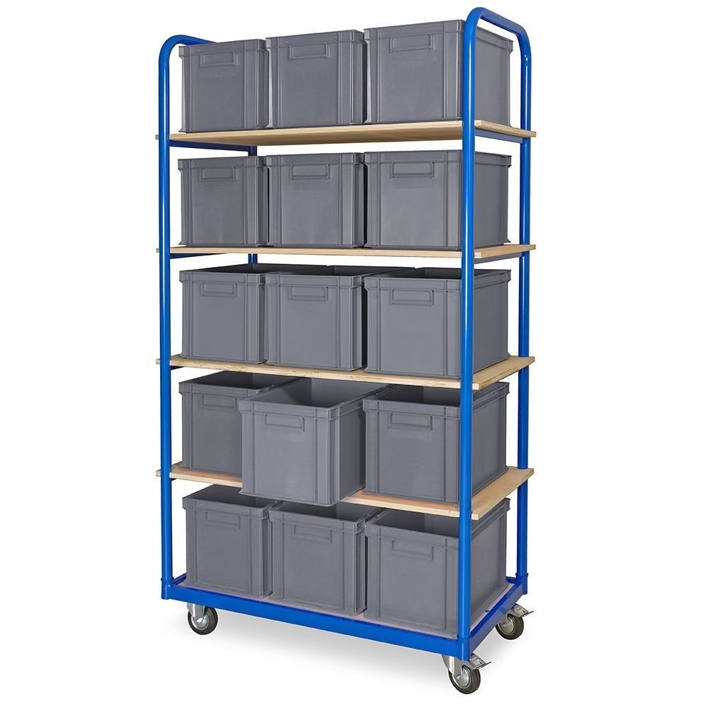 Kommissionierwagen mit 5 Ebenen und 15 Behältern in grau, LxBxH 400x300x280 mm