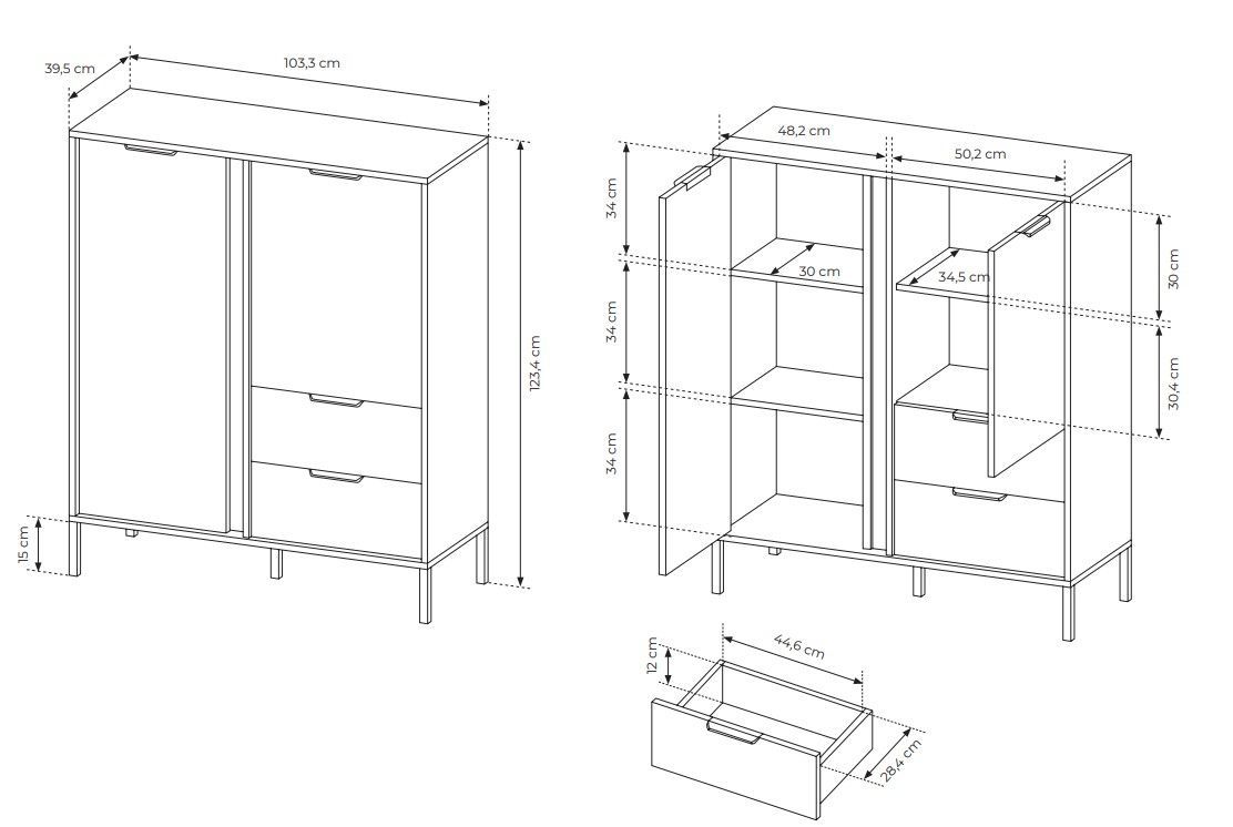 Kommode 100 cm Daros, Sideboard mit Schubladen, Wohnzimmerkommode mit 2 Türen