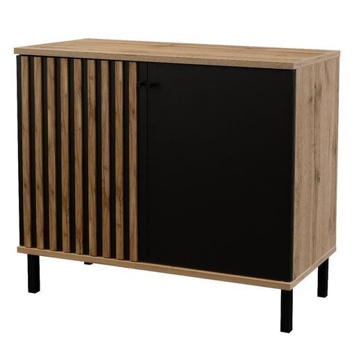Kommode 100 cm London 2D Wohnzimmerschrank 2 Türiger Wotan Eiche Schwarz