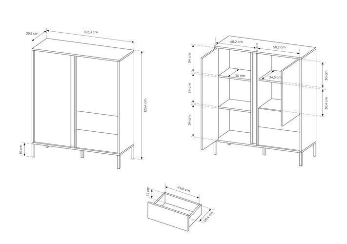 Kommode 103x123x39,5 cm DAST A Schrank HighboardWohnzimmerschrank