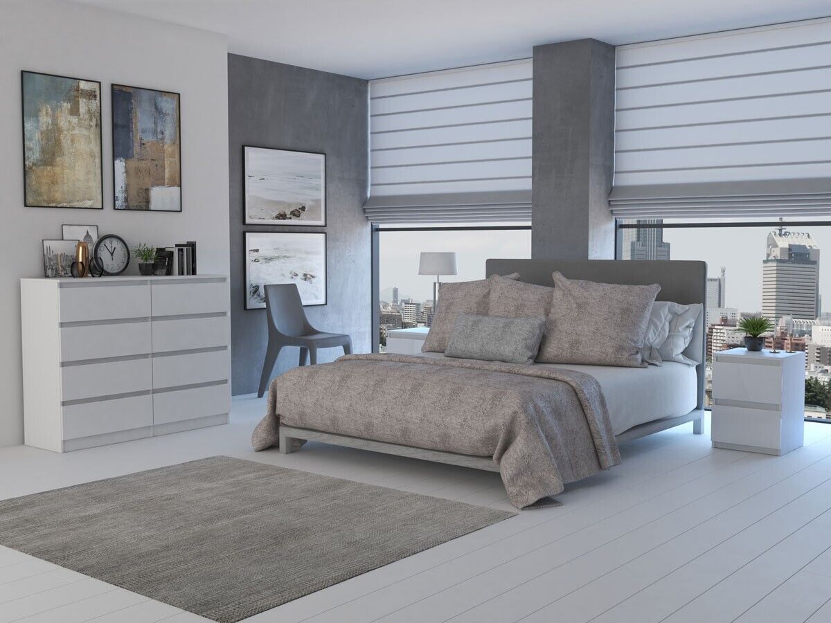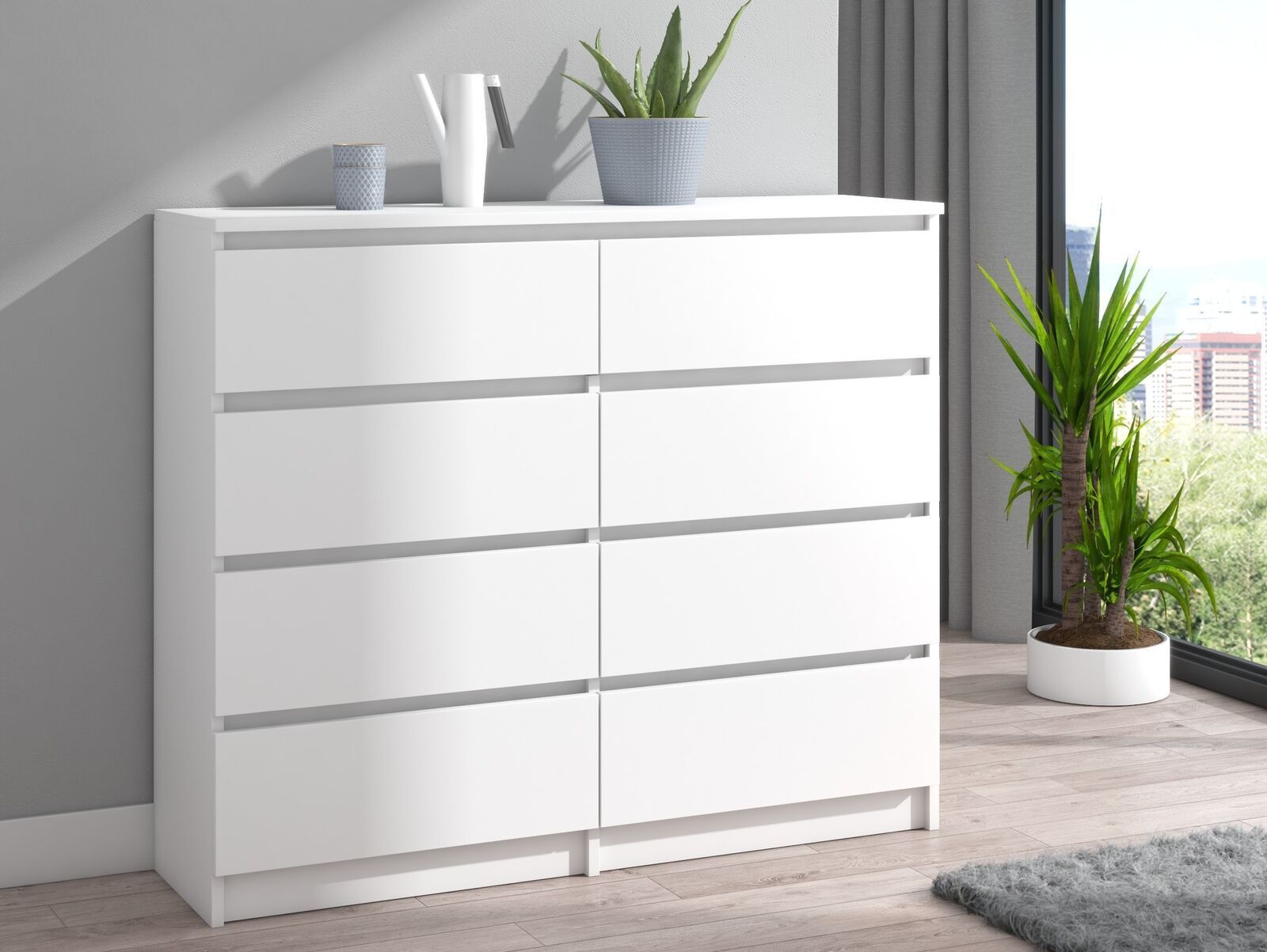 Kommode 120cm mit 8 Schubladen Sideboard weiß Anrichte modern glatt