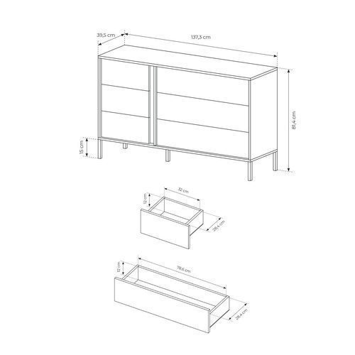 Kommode 137x81x39,5 cm DAST J Sideboard 6 Schubkästen Beige