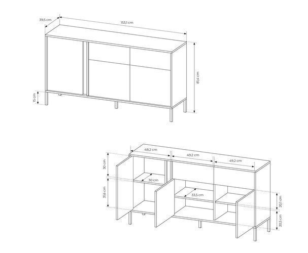Kommode 153x81x39,5 cm DAST B Sideboard 3 Türen 2 Schubkästen Beige
