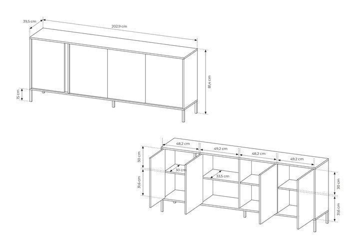 Kommode 203x81x39,5 cm DAST E Sideboard 4 Türen Schrank Wohnzimmerschrank Beige